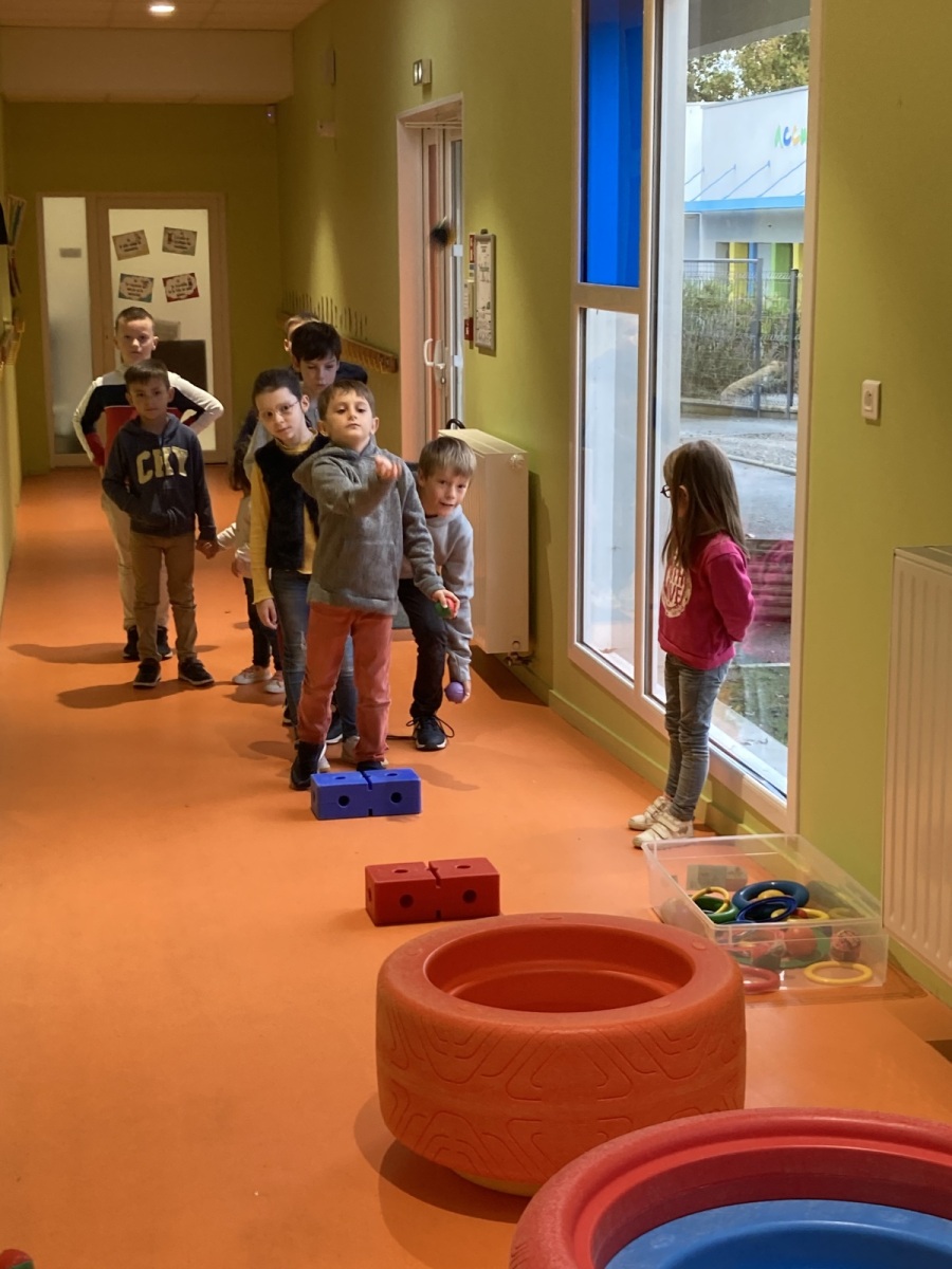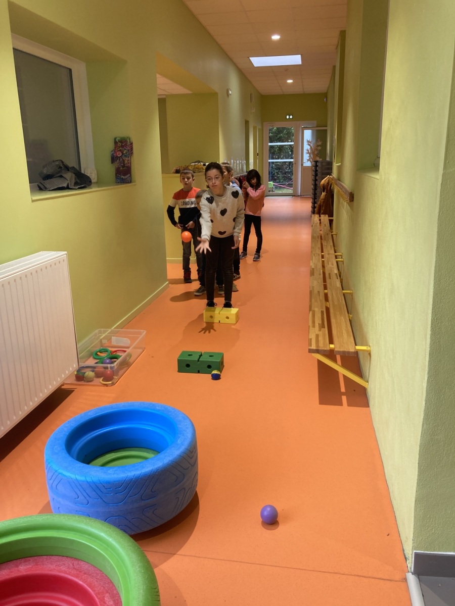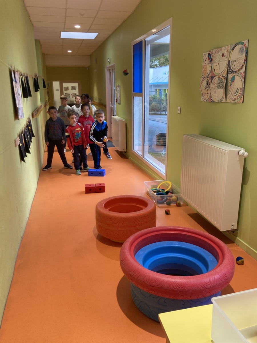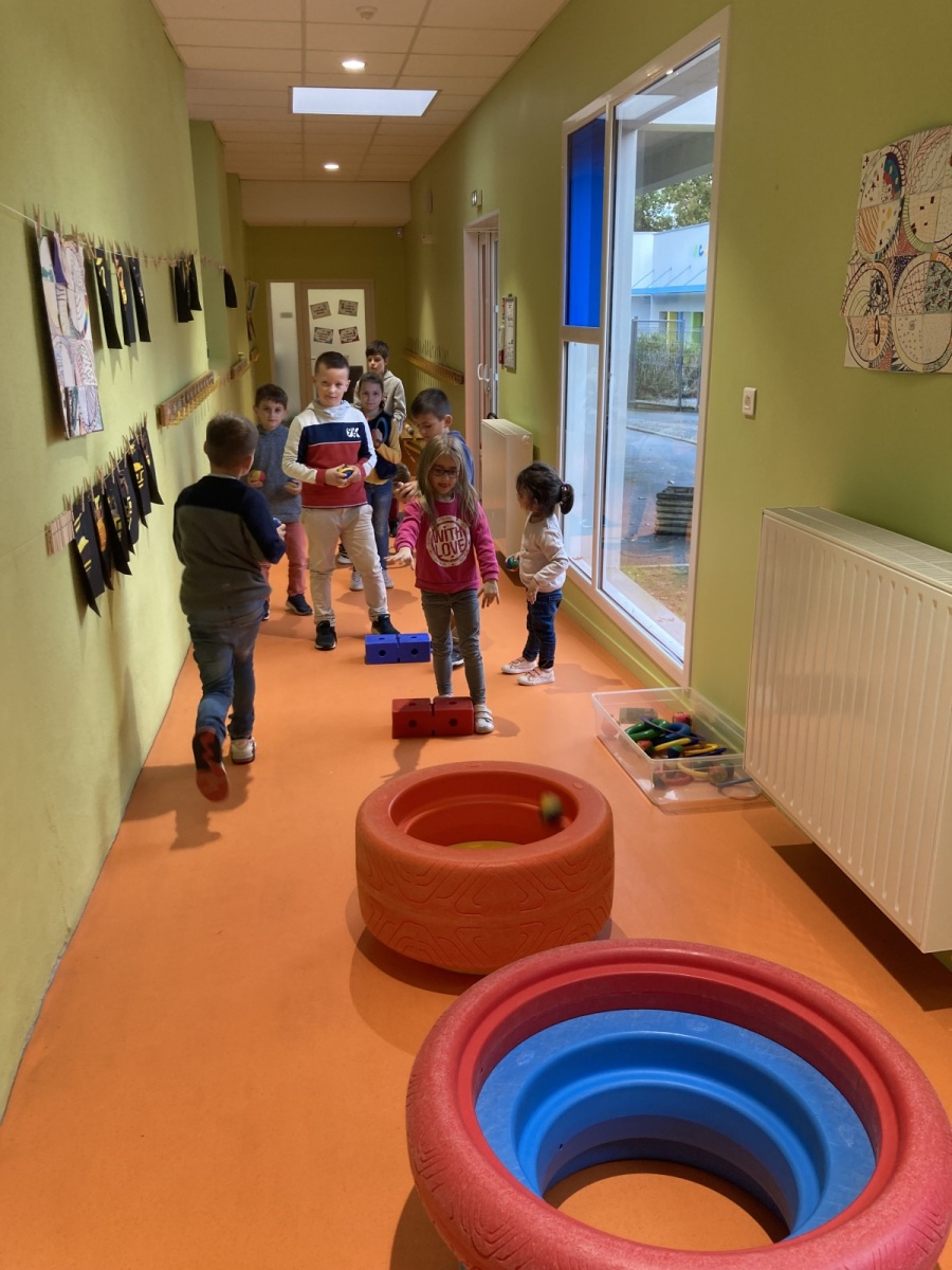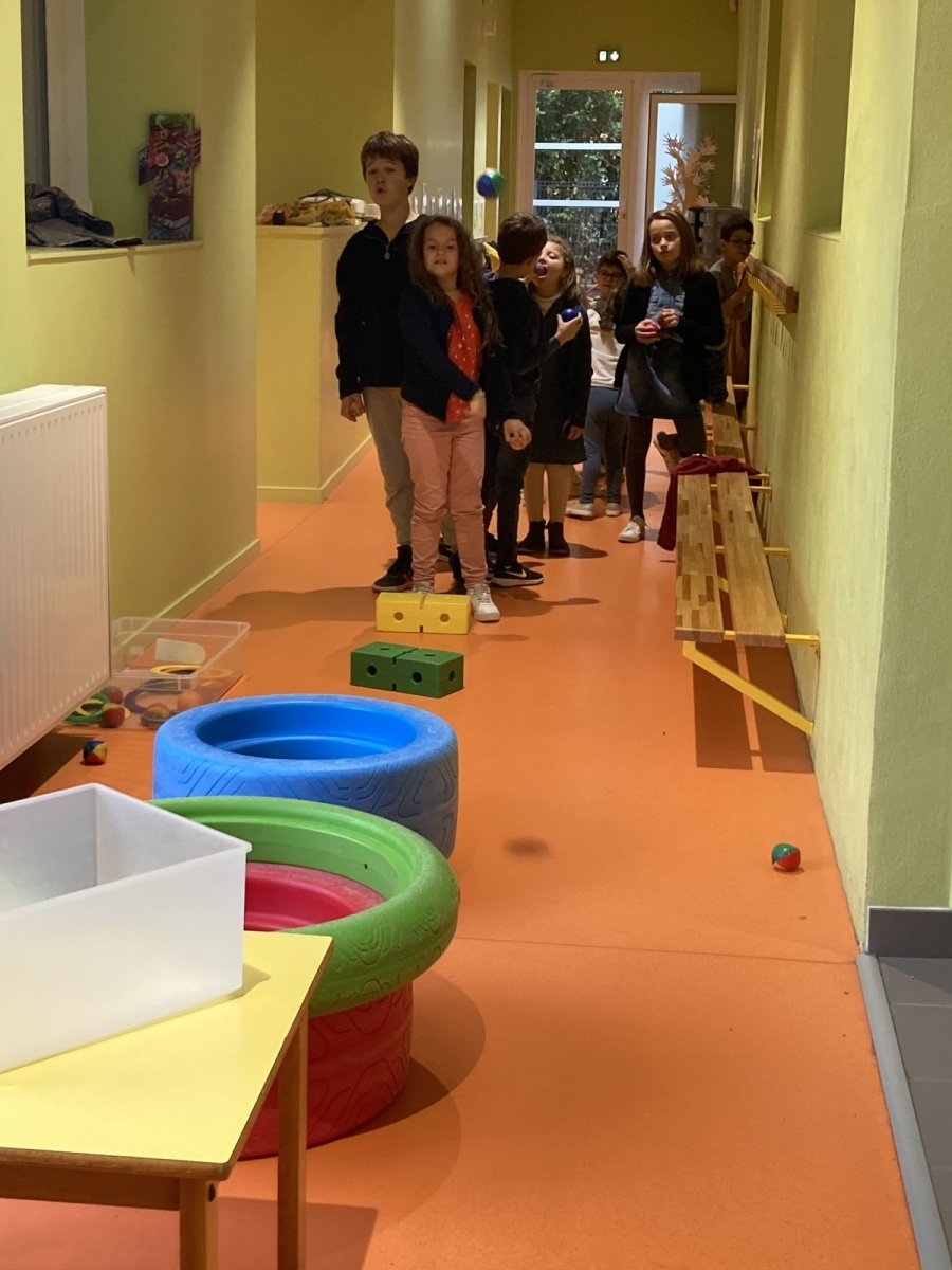 En GS et CP, les élèves ont participé à cinq jeux : les déménageurs, deux relais, le ballon chronomètre et un parcours.