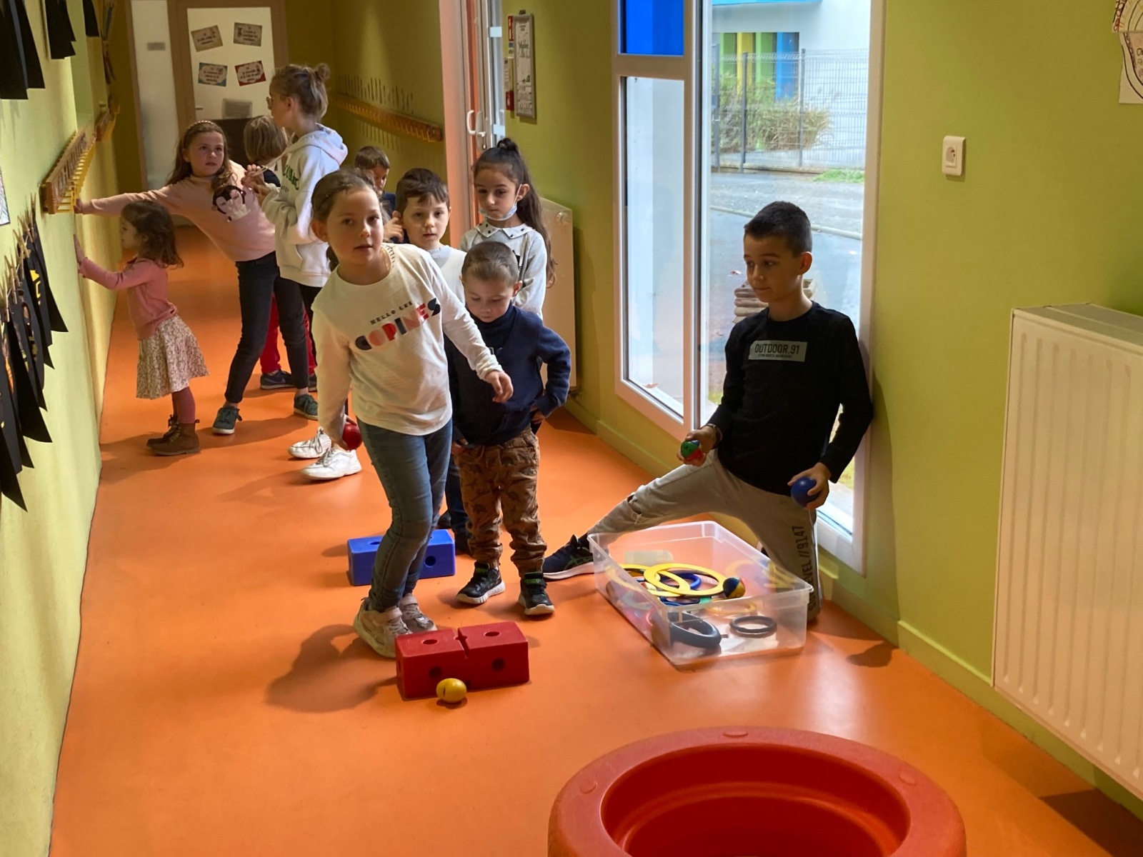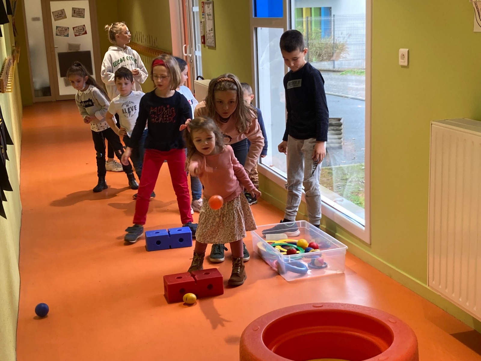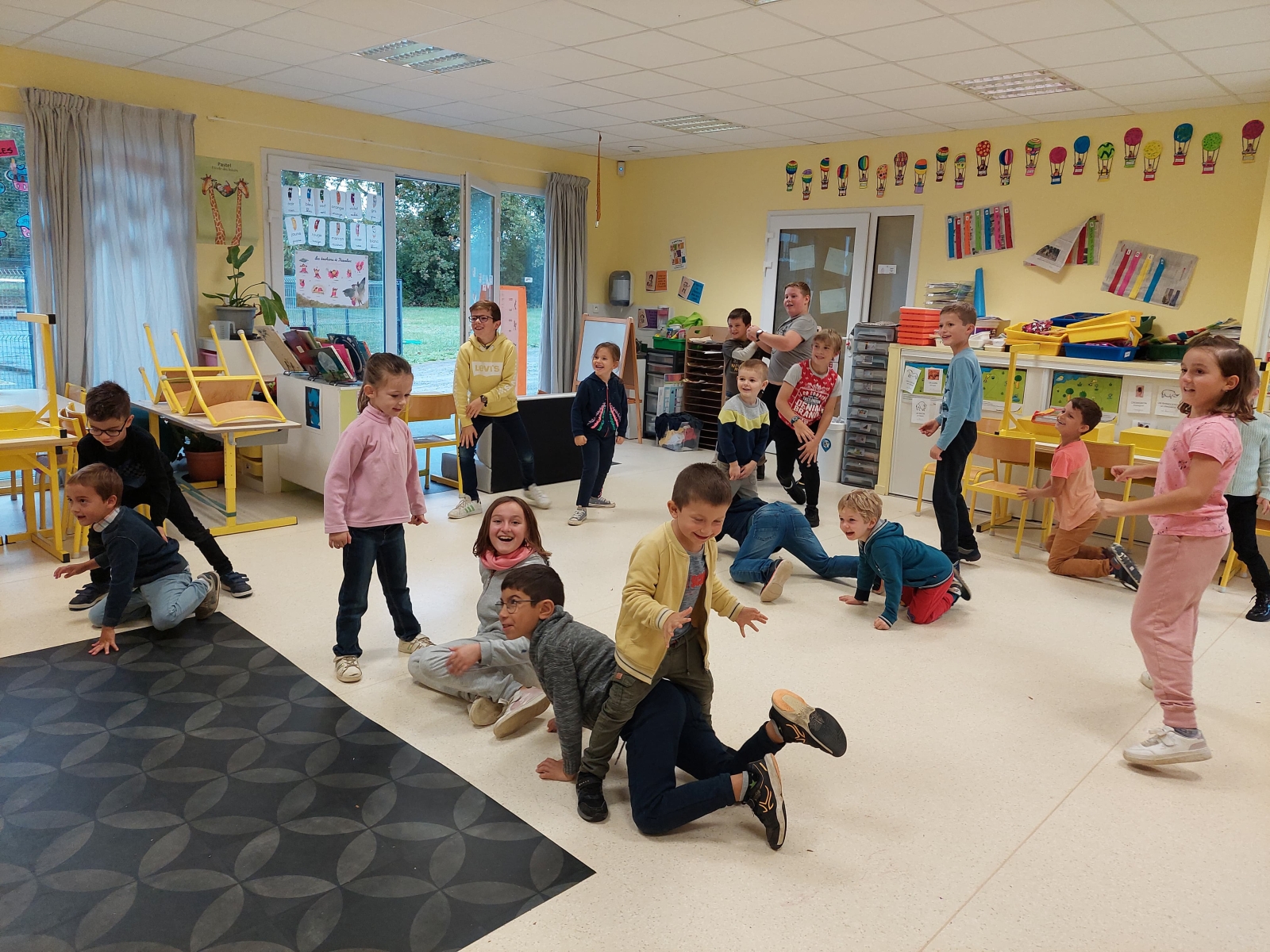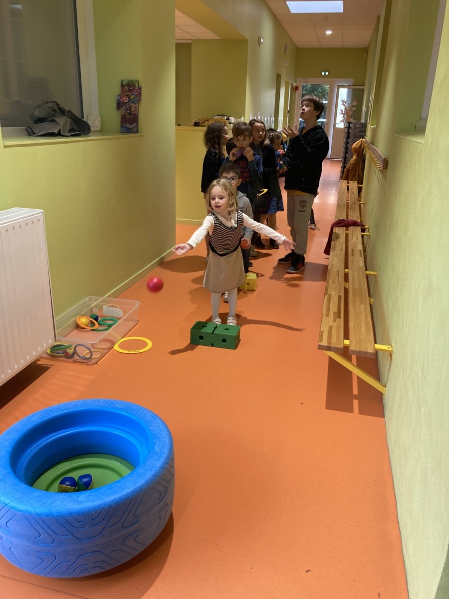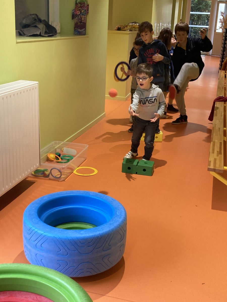 En GS et CP, les élèves ont participé à cinq jeux : les déménageurs, deux relais, le ballon chronomètre et un parcours.