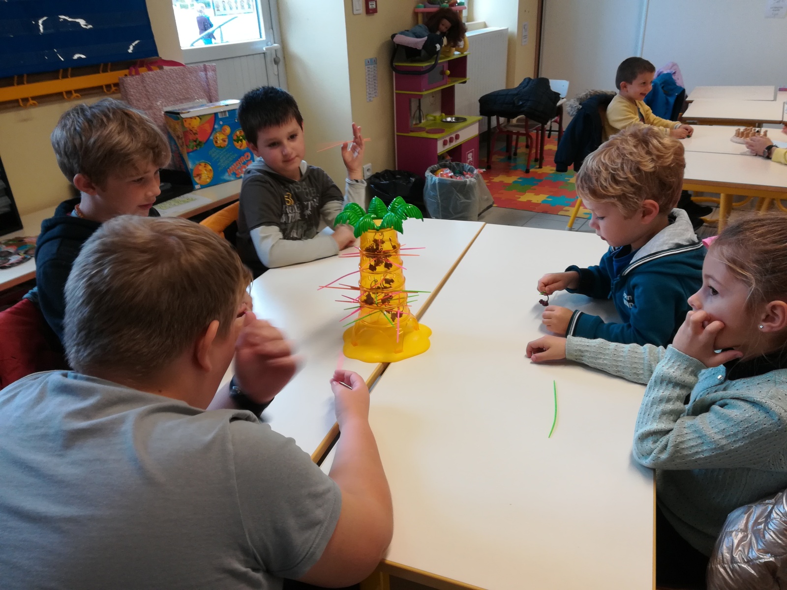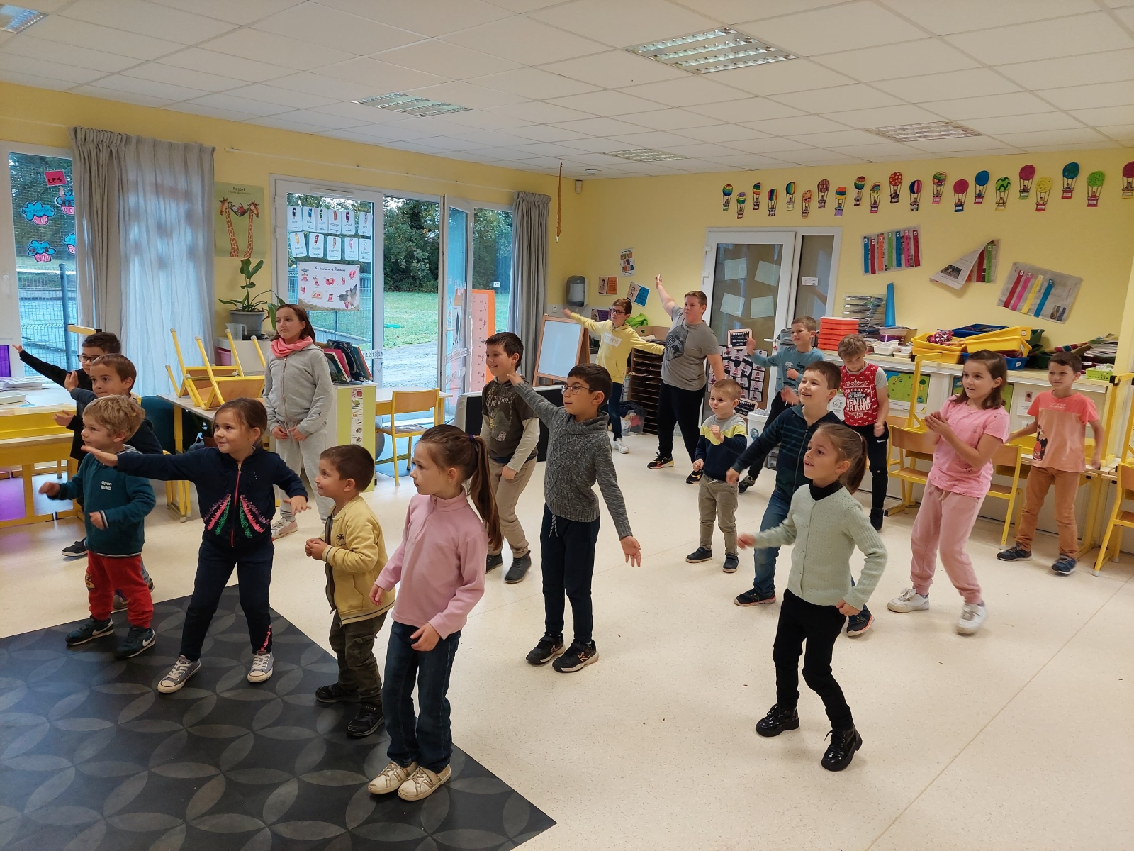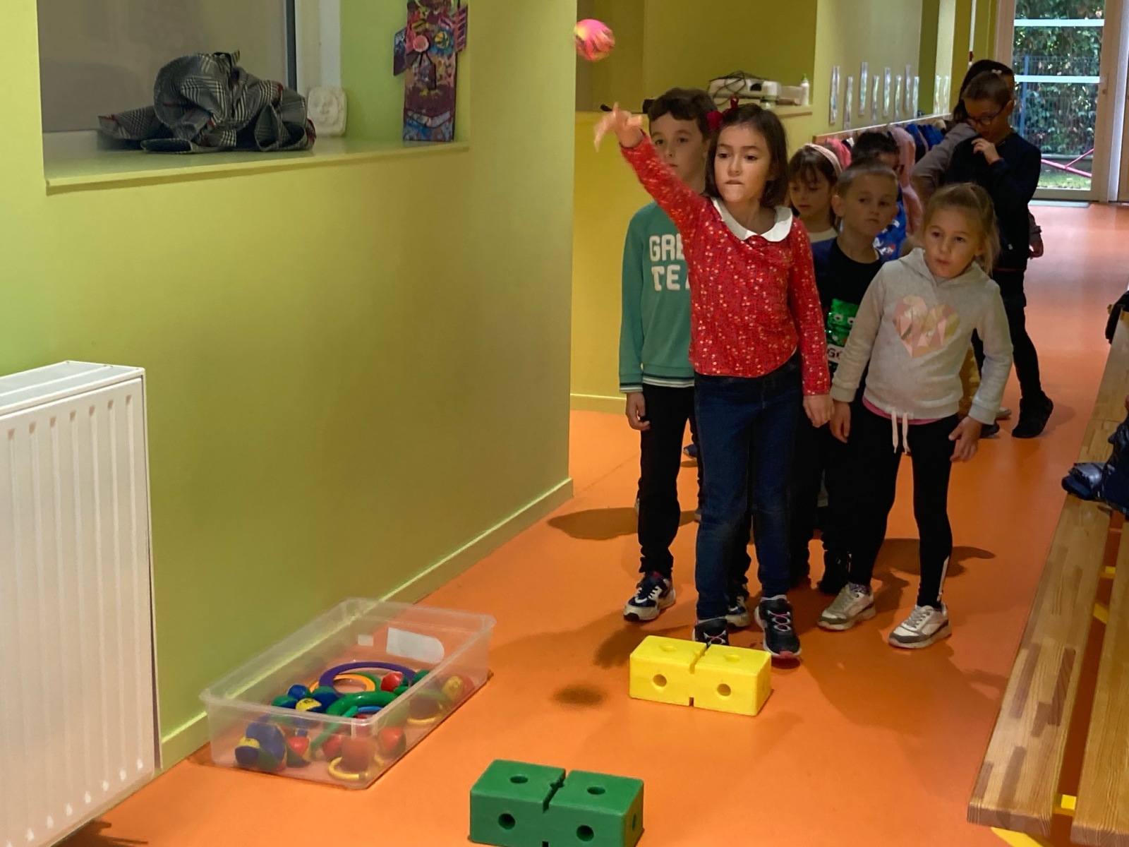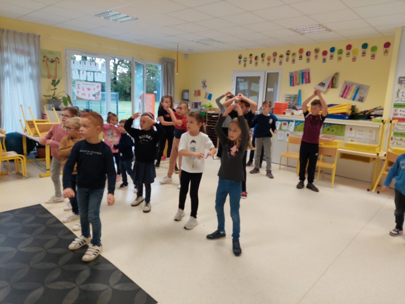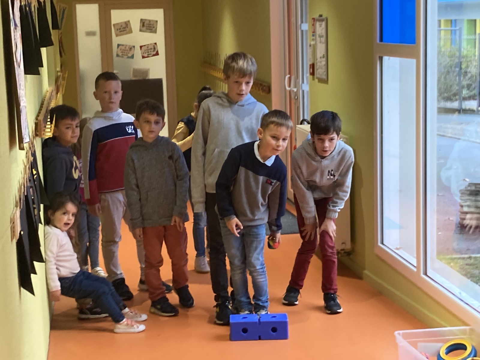 En GS et CP, les élèves ont participé à cinq jeux : les déménageurs, deux relais, le ballon chronomètre et un parcours.