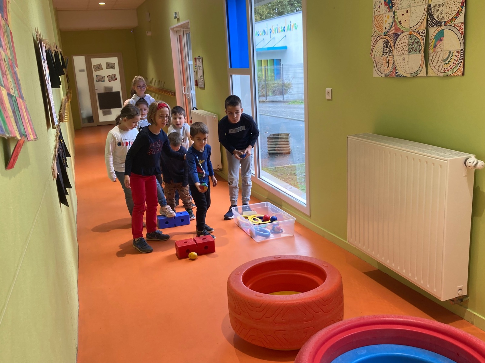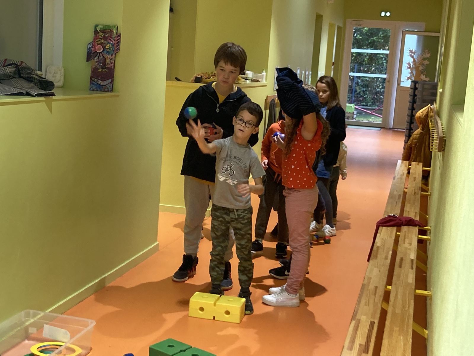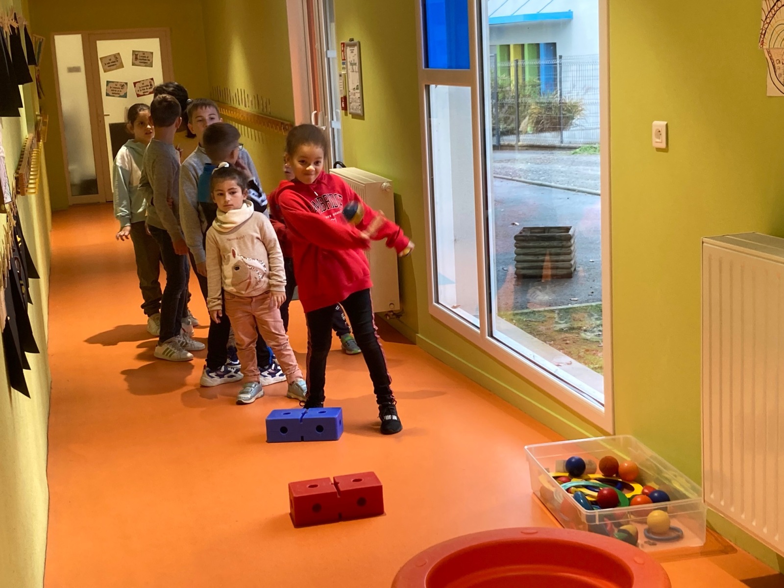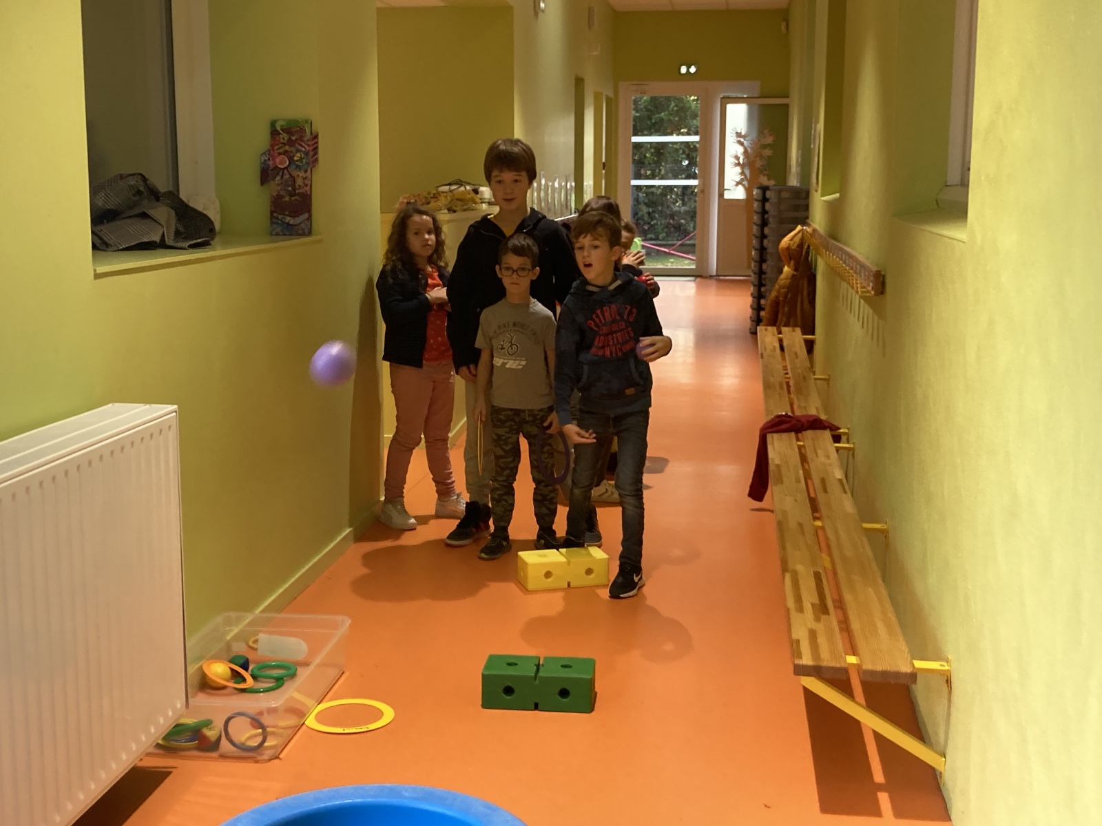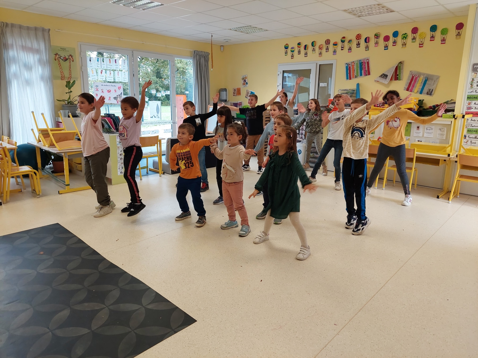 En GS et CP, les élèves ont participé à cinq jeux : les déménageurs, deux relais, le ballon chronomètre et un parcours.