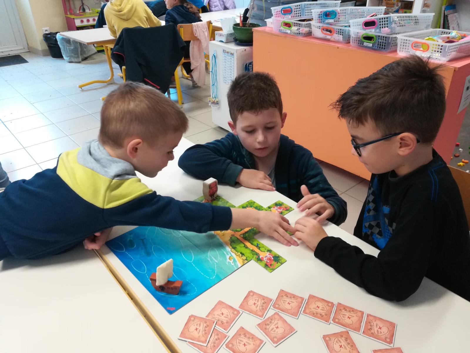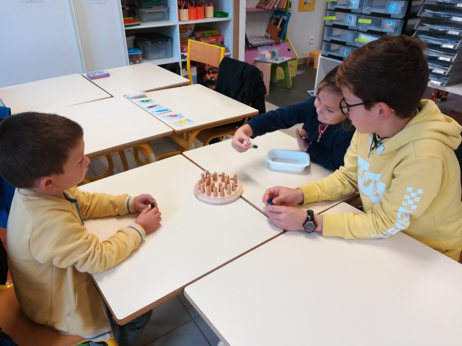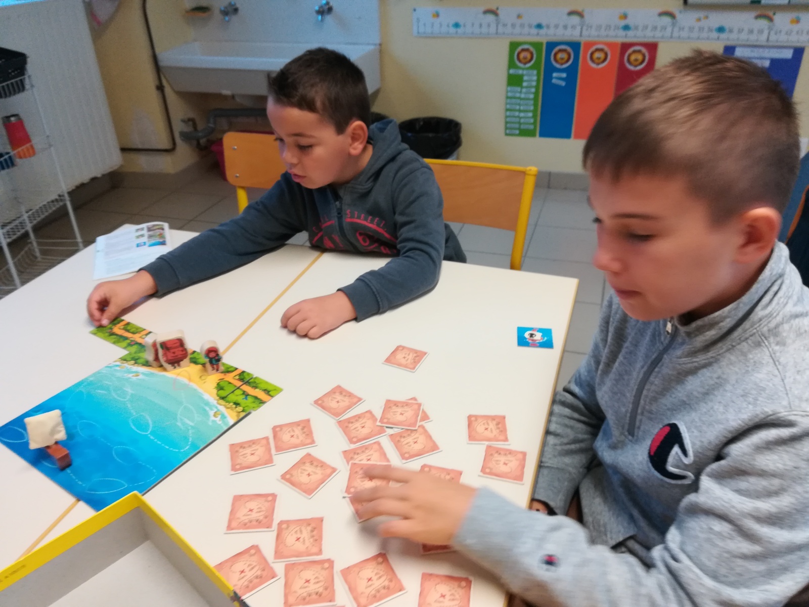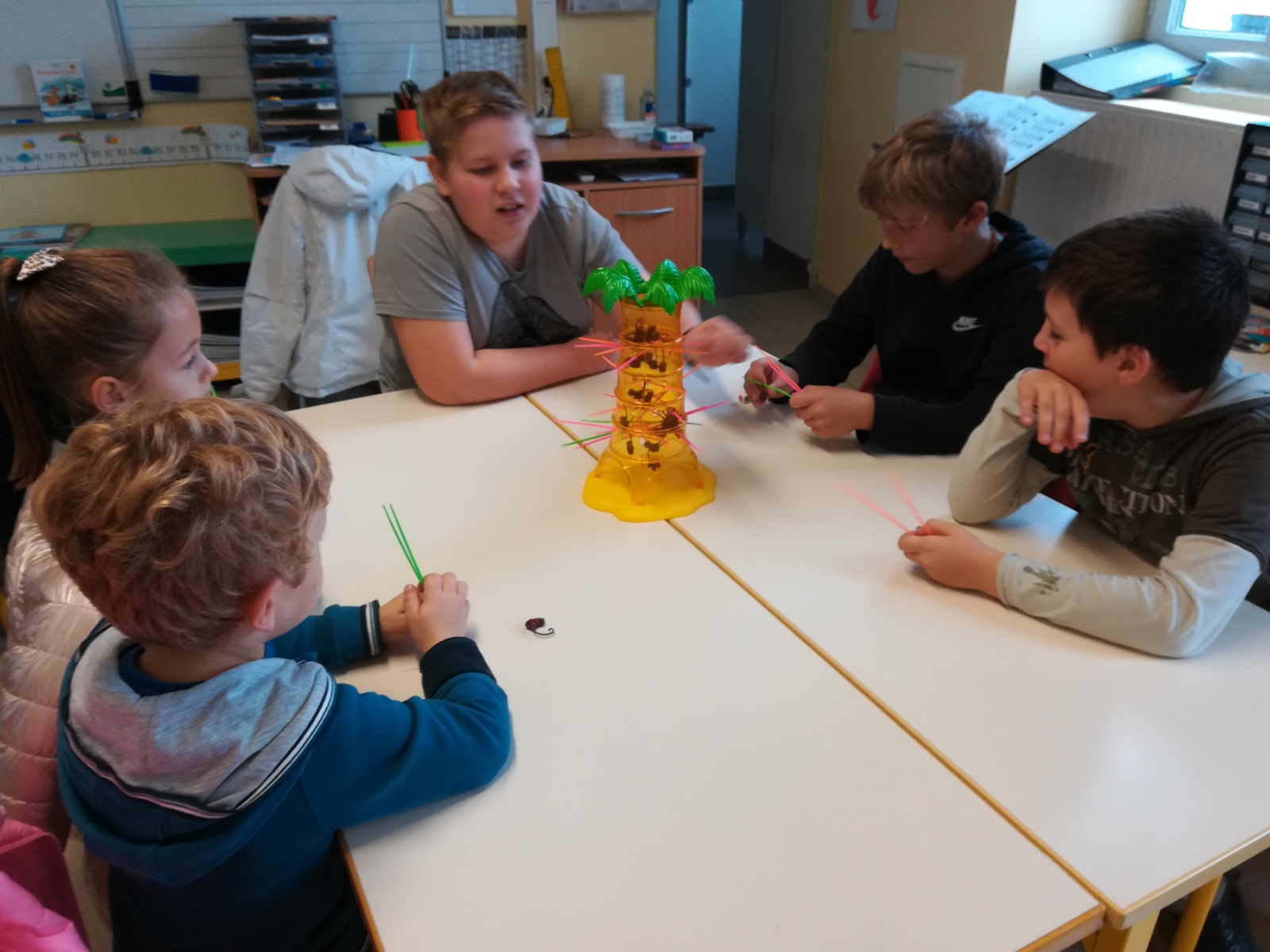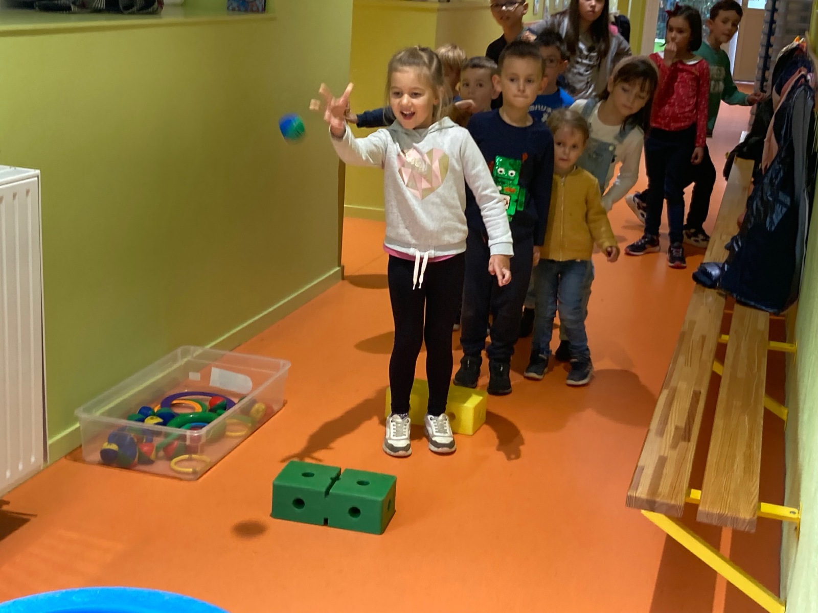 En GS et CP, les élèves ont participé à cinq jeux : les déménageurs, deux relais, le ballon chronomètre et un parcours.