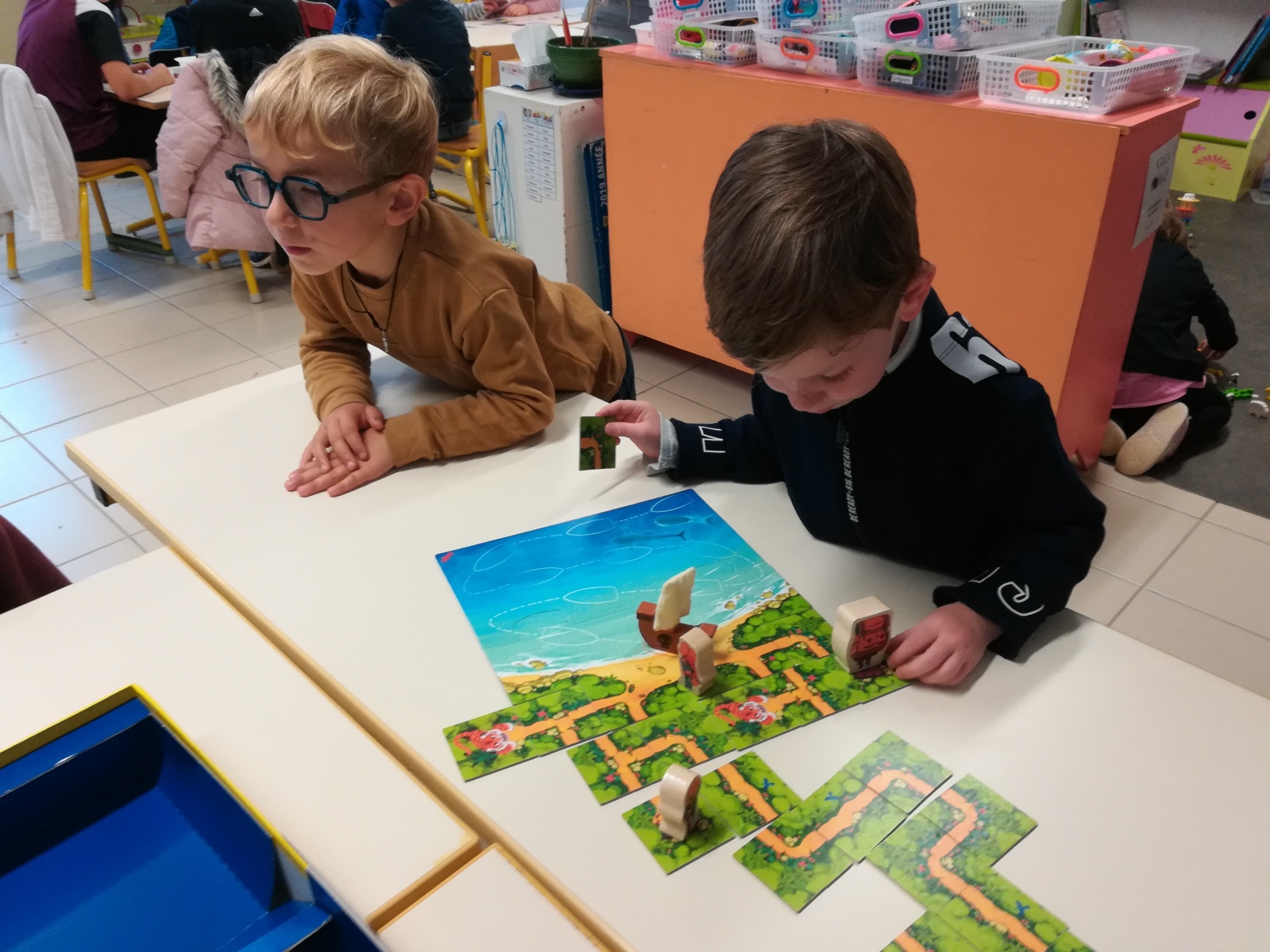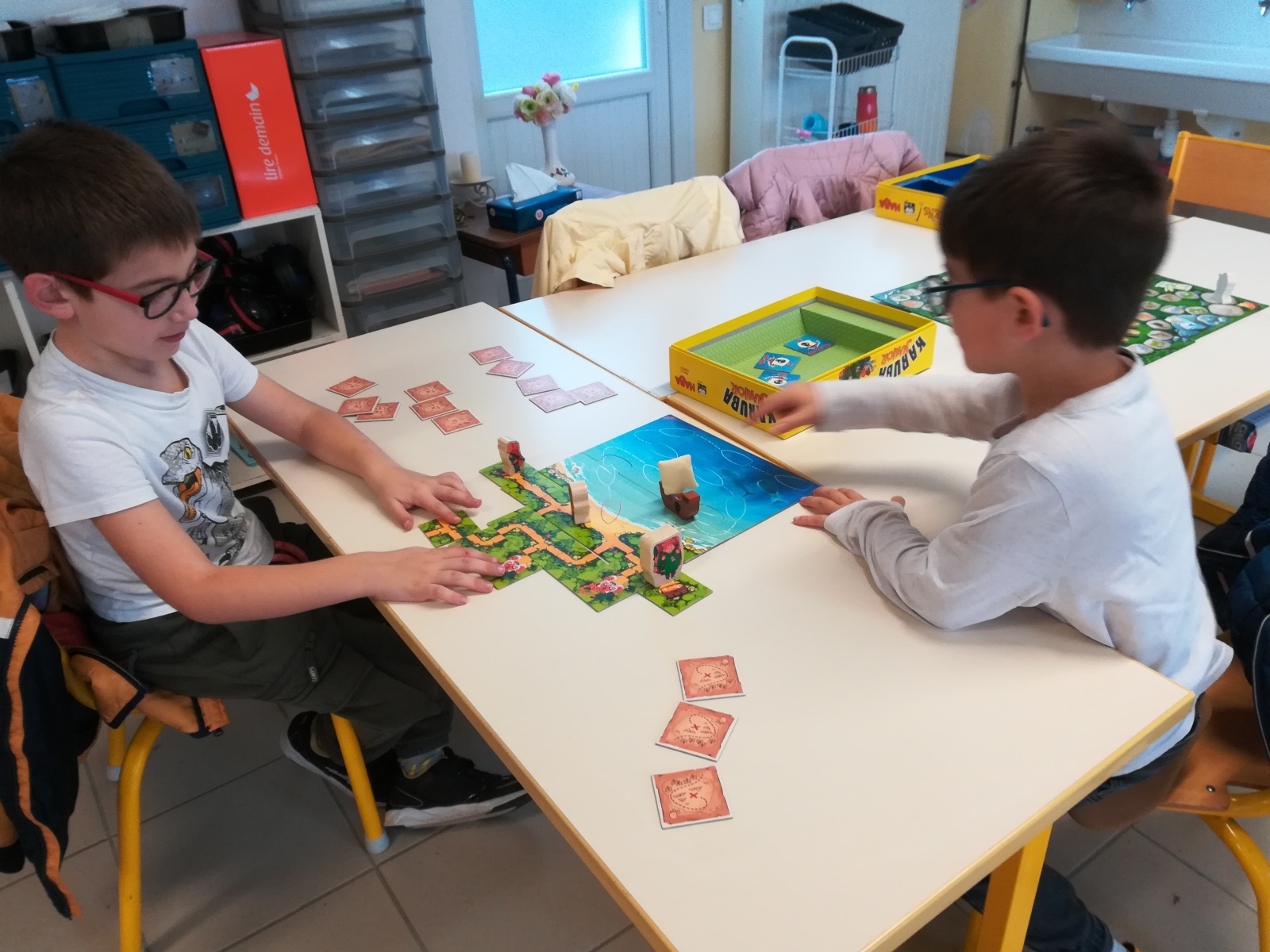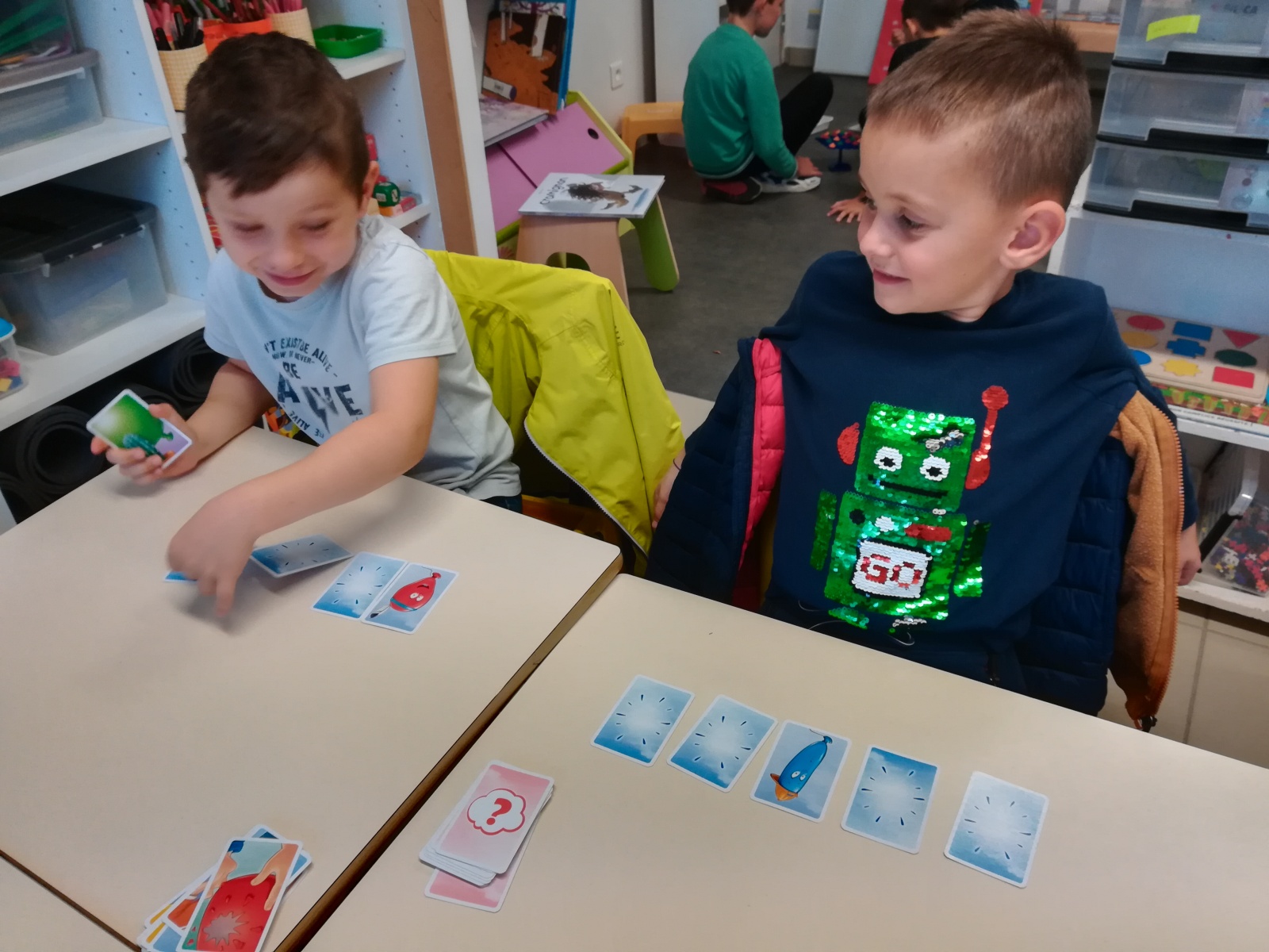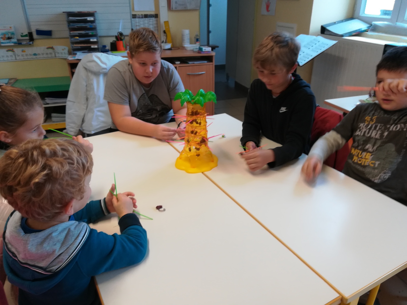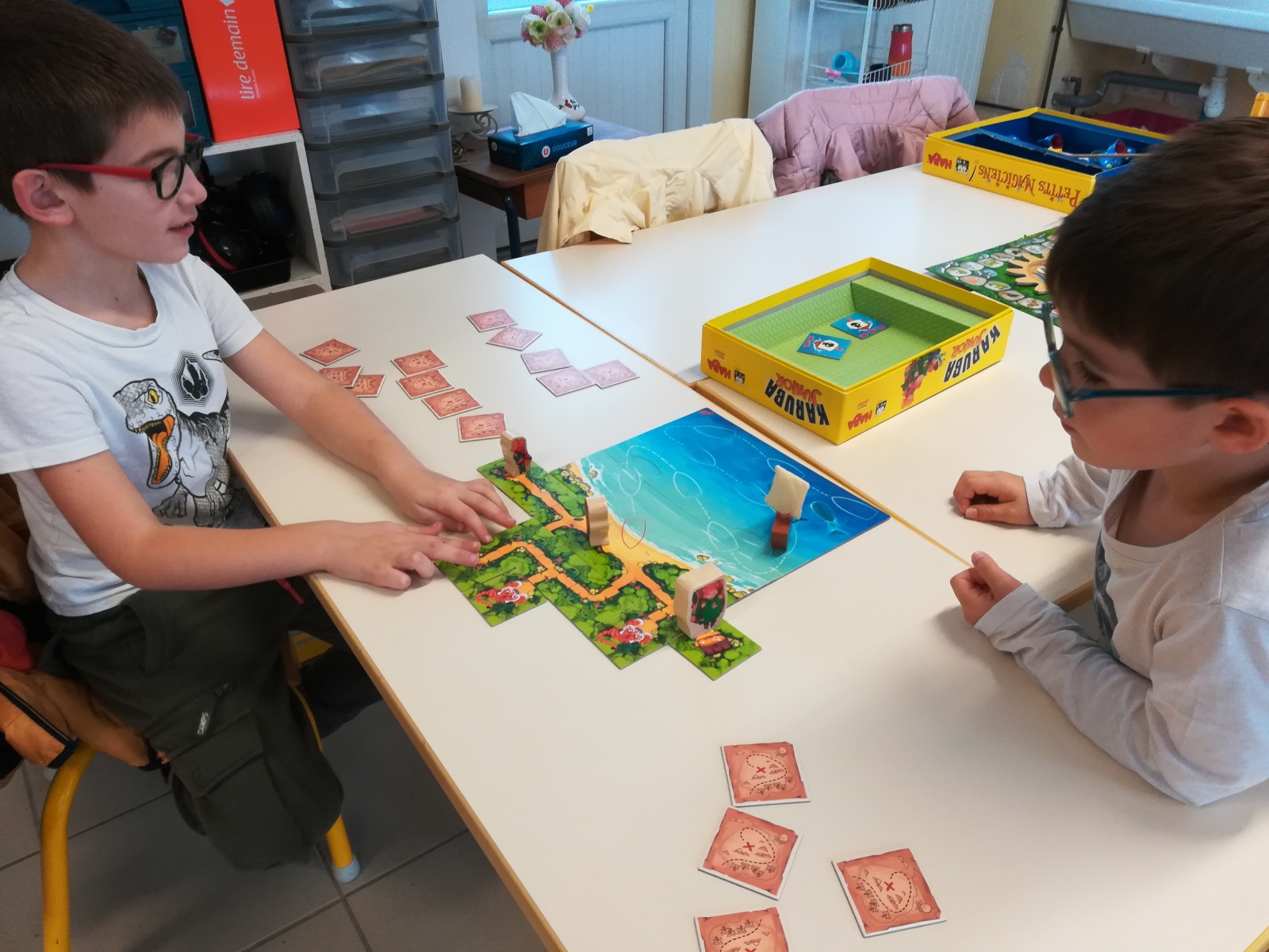 En GS et CP, les élèves ont participé à cinq jeux : les déménageurs, deux relais, le ballon chronomètre et un parcours.