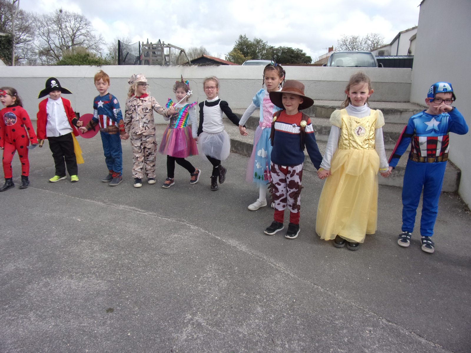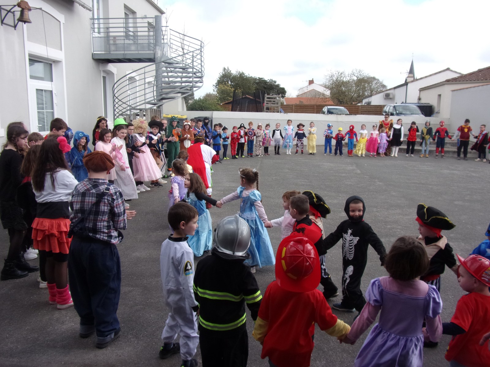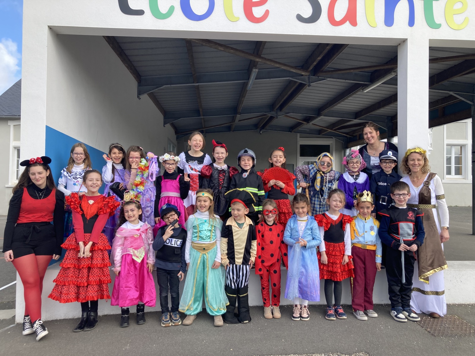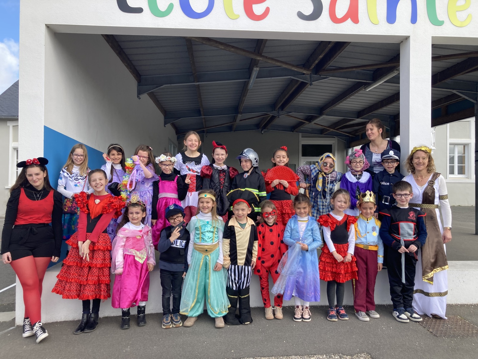 Mardi 21 mars, les élèves de l’école Sainte Thérèse ont fêté Mardi gras. Tout le monde est venu déguisé à l’école : princesse, chevalier, super-héros, miss, cow-boy, pirate, footballer, danseuse, bricoleur … L’après-midi toutes les classes ont défilé dans la cour et ont pu dégusté un goûter (crêpes et jus de pomme) confectionné par les mamans de l’APEL. Très belle journée pour les enfants !