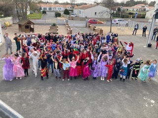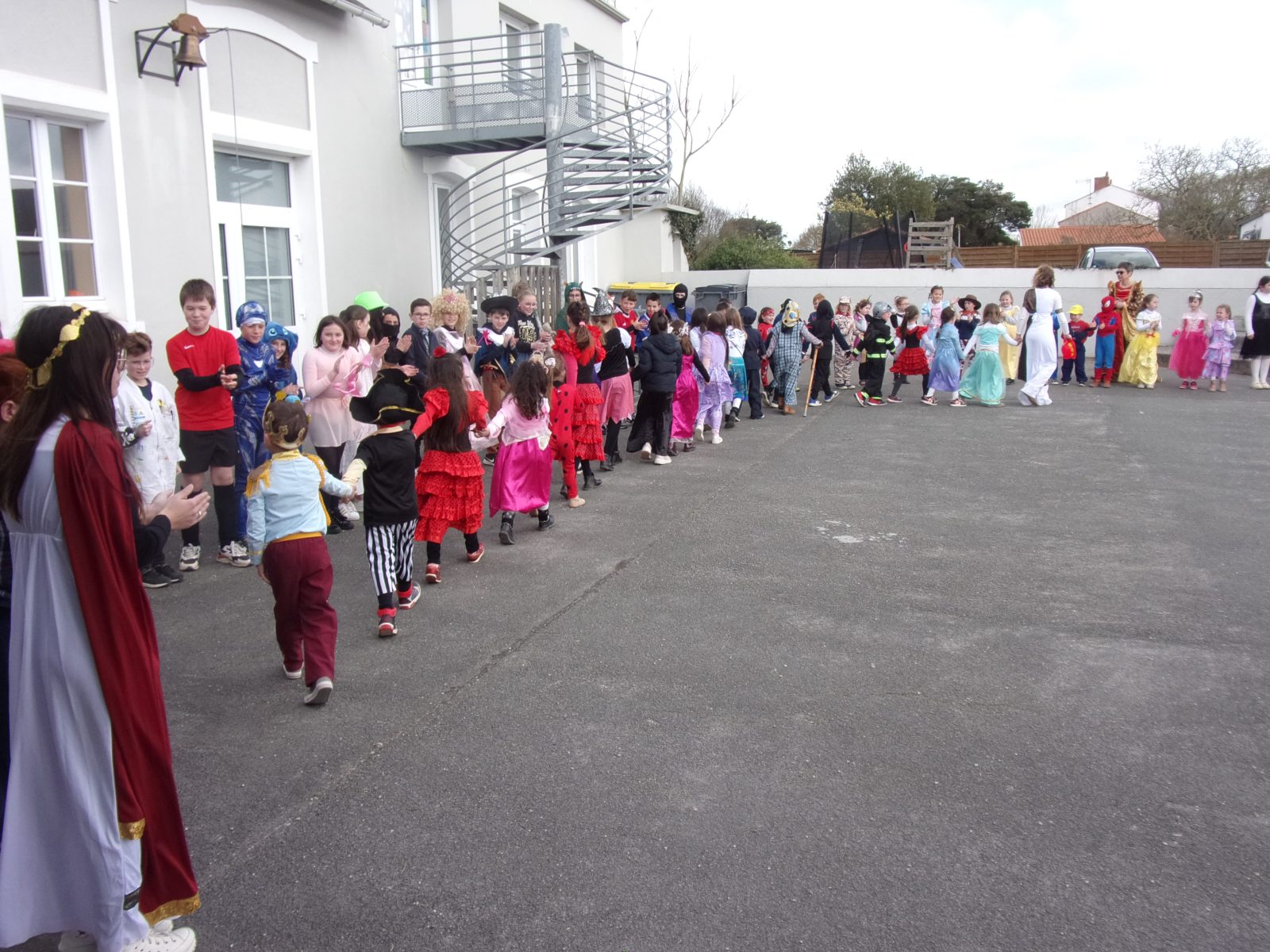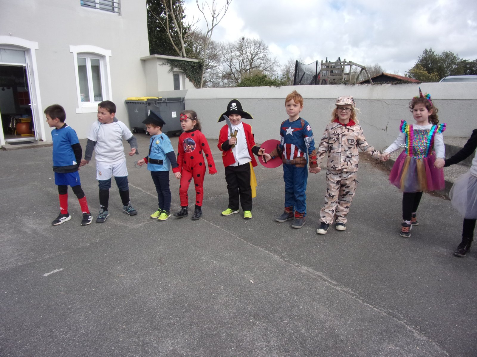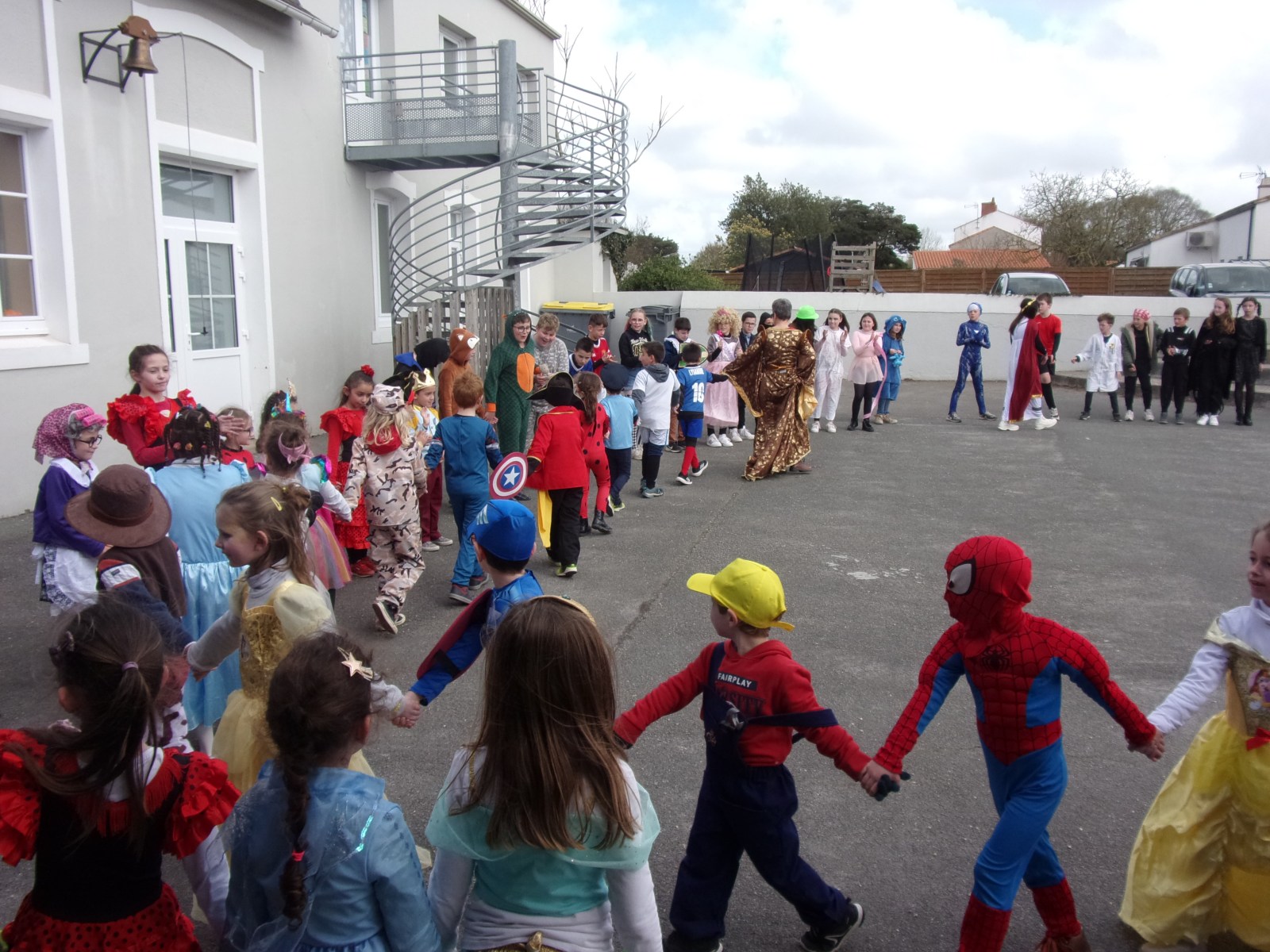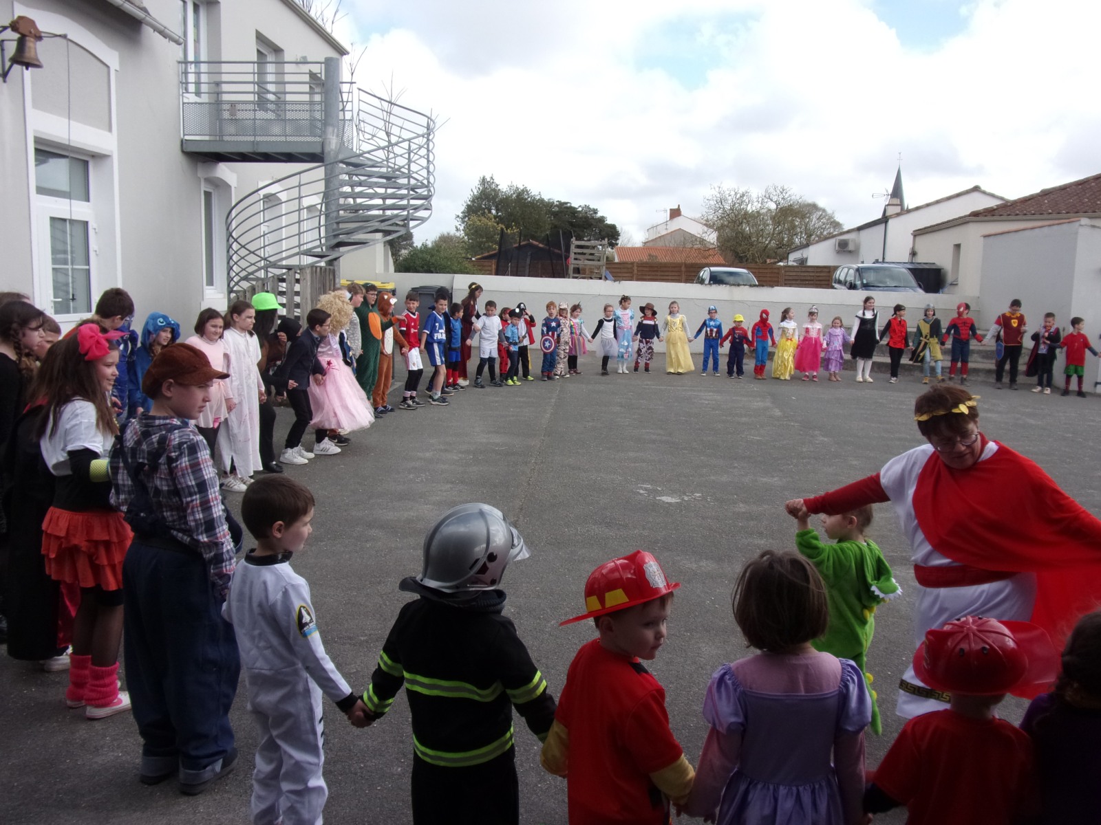 Mardi 21 mars, les élèves de l’école Sainte Thérèse ont fêté Mardi gras. Tout le monde est venu déguisé à l’école : princesse, chevalier, super-héros, miss, cow-boy, pirate, footballer, danseuse, bricoleur … L’après-midi toutes les classes ont défilé dans la cour et ont pu dégusté un goûter (crêpes et jus de pomme) confectionné par les mamans de l’APEL. Très belle journée pour les enfants !