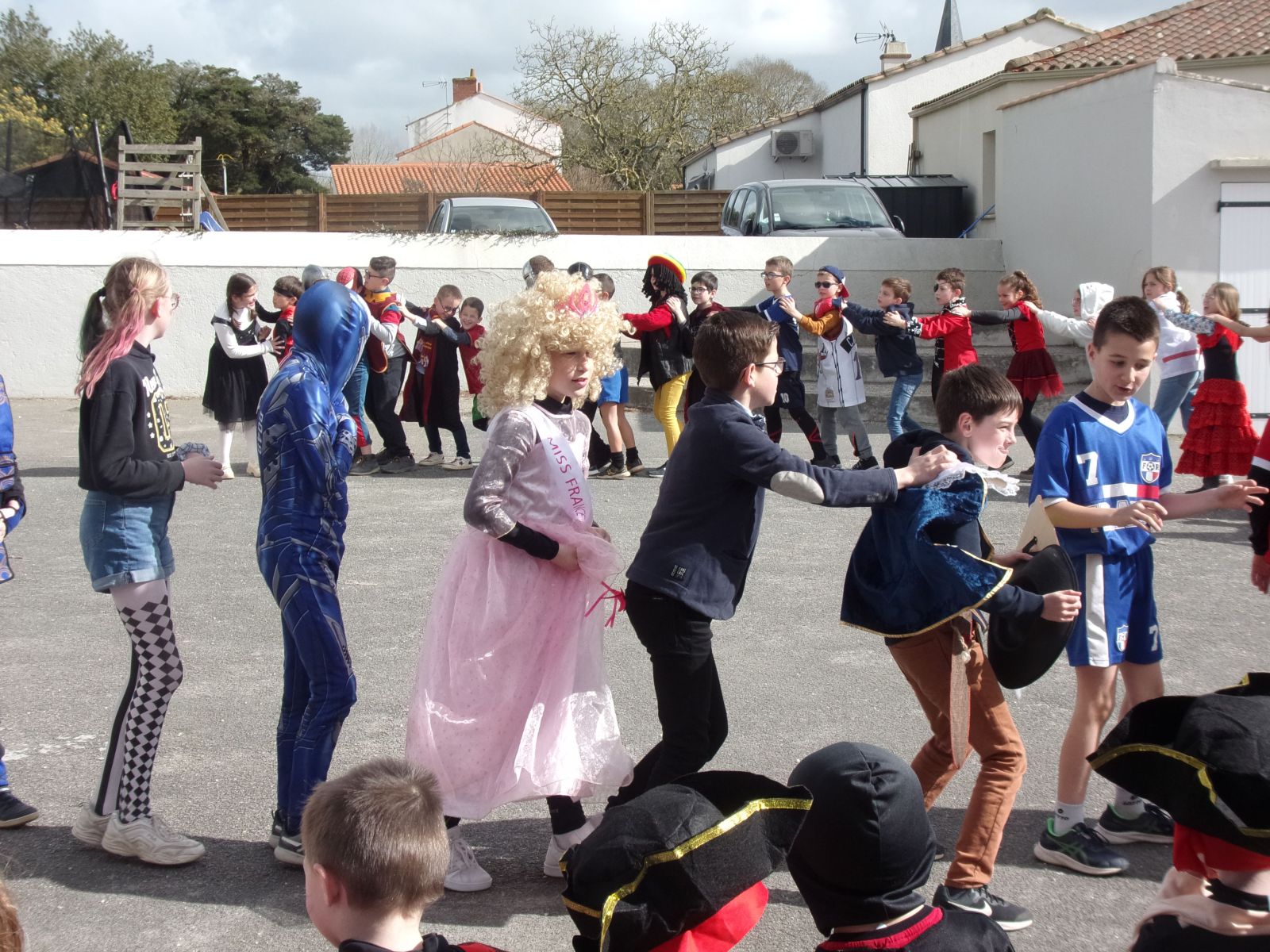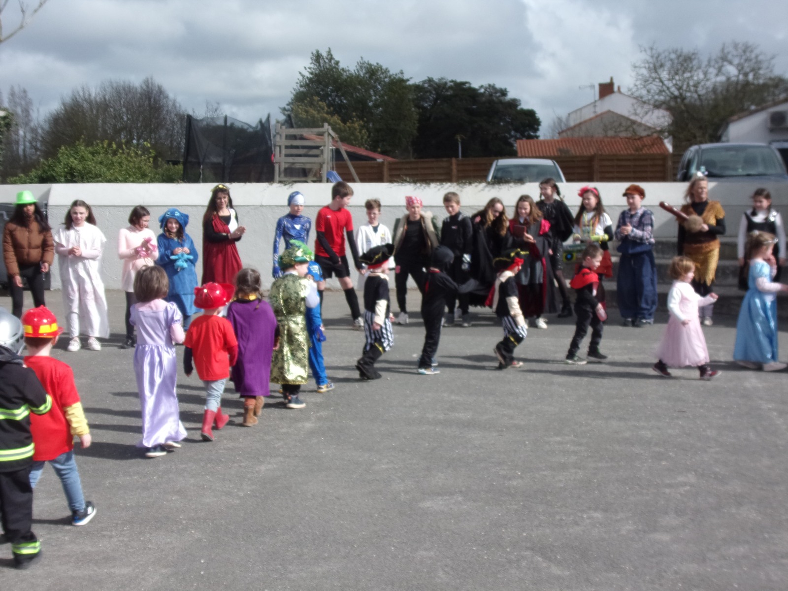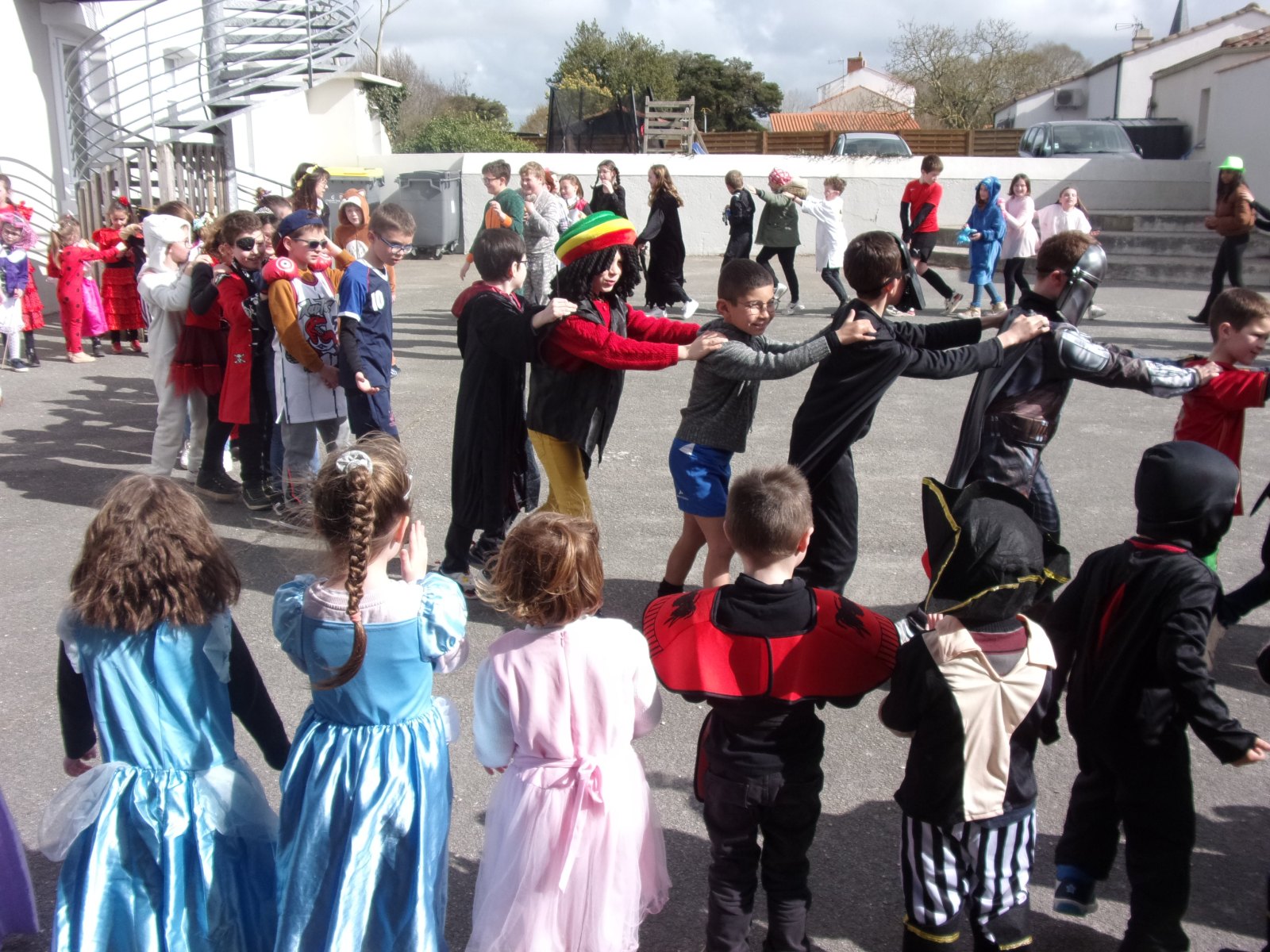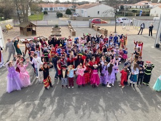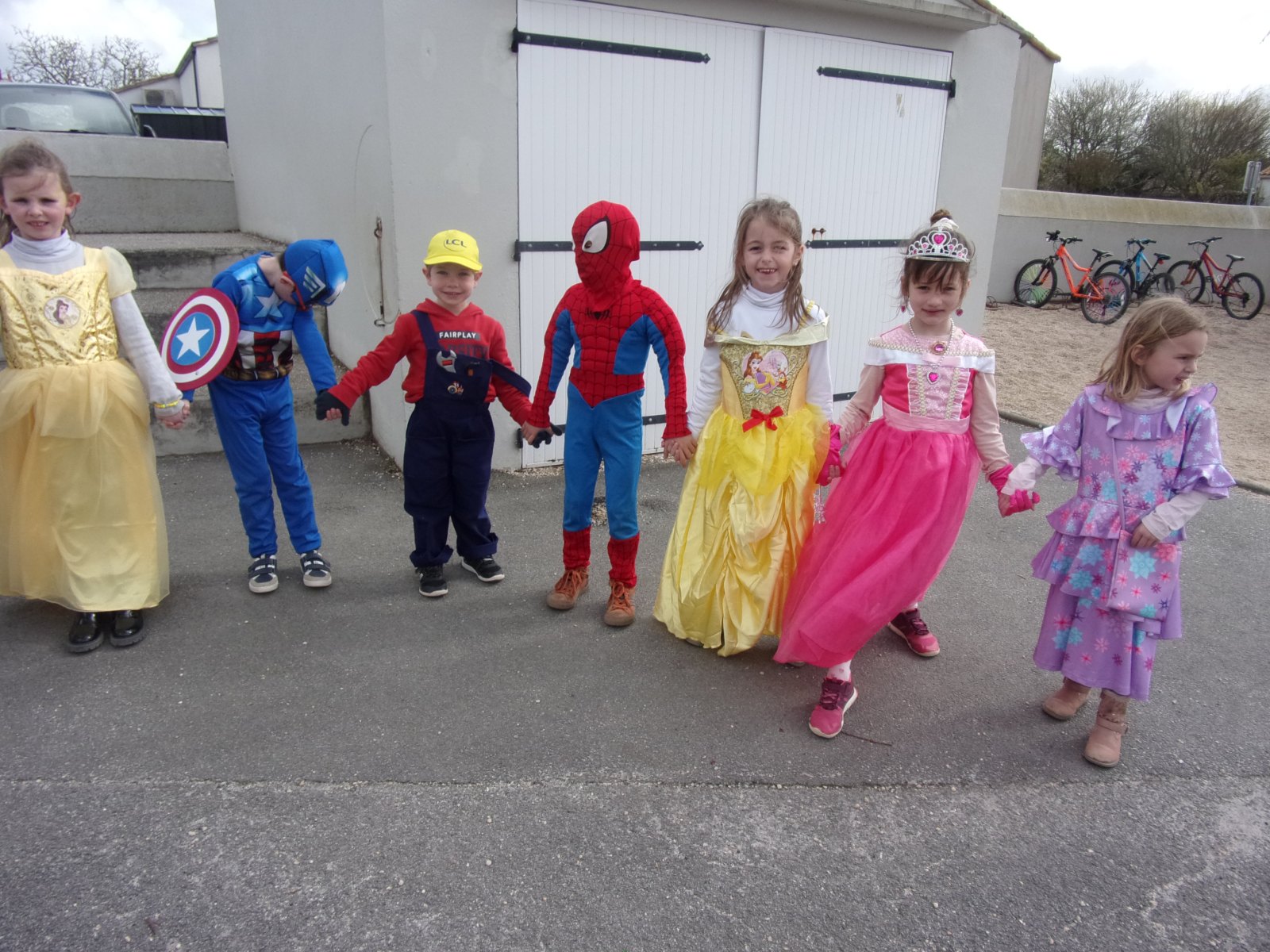 Mardi 21 mars, les élèves de l’école Sainte Thérèse ont fêté Mardi gras. Tout le monde est venu déguisé à l’école : princesse, chevalier, super-héros, miss, cow-boy, pirate, footballer, danseuse, bricoleur … L’après-midi toutes les classes ont défilé dans la cour et ont pu dégusté un goûter (crêpes et jus de pomme) confectionné par les mamans de l’APEL. Très belle journée pour les enfants !