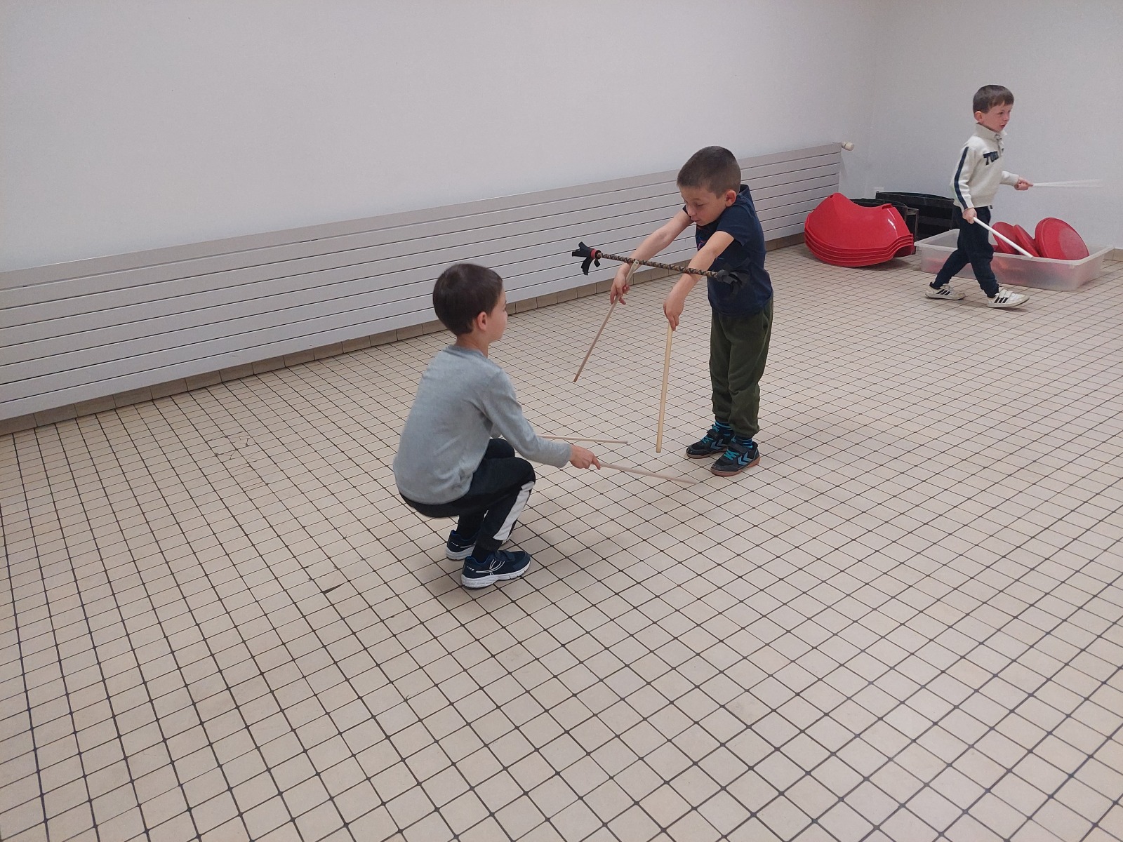 Nous adorons ces séances le mardi matin car nous découvrons plein d’activités, de matériel, … Nous apprenons et nous sommes impressionnés de l’évolution déjà réalisée ! Nous savons faire plein de choses. Nous avons aussi pu observer que chacun avait des points forts et des points faibles et nous nous entraidons.
