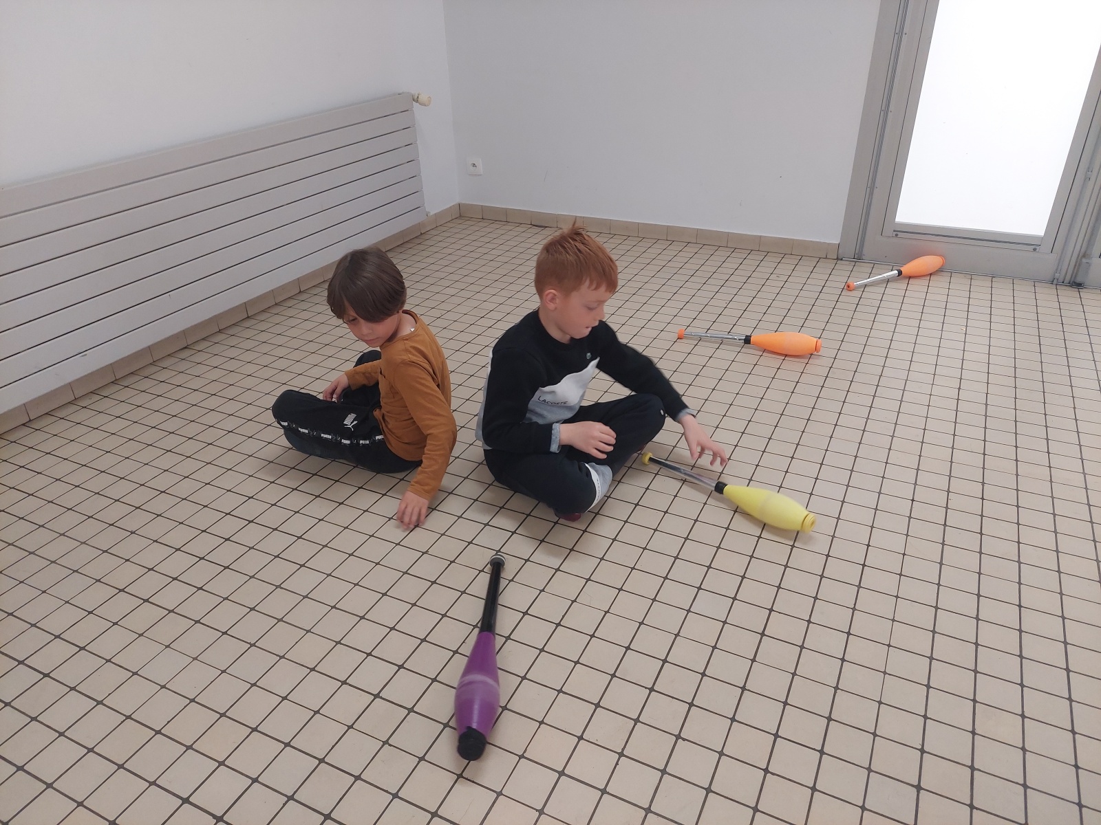 Depuis le mois de mars nous avons fait 5 séances de cirque avec Fabien de la compagnie Fabigan. Nous avons découvert qu’il y avait 5 familles dans les arts du cirque: