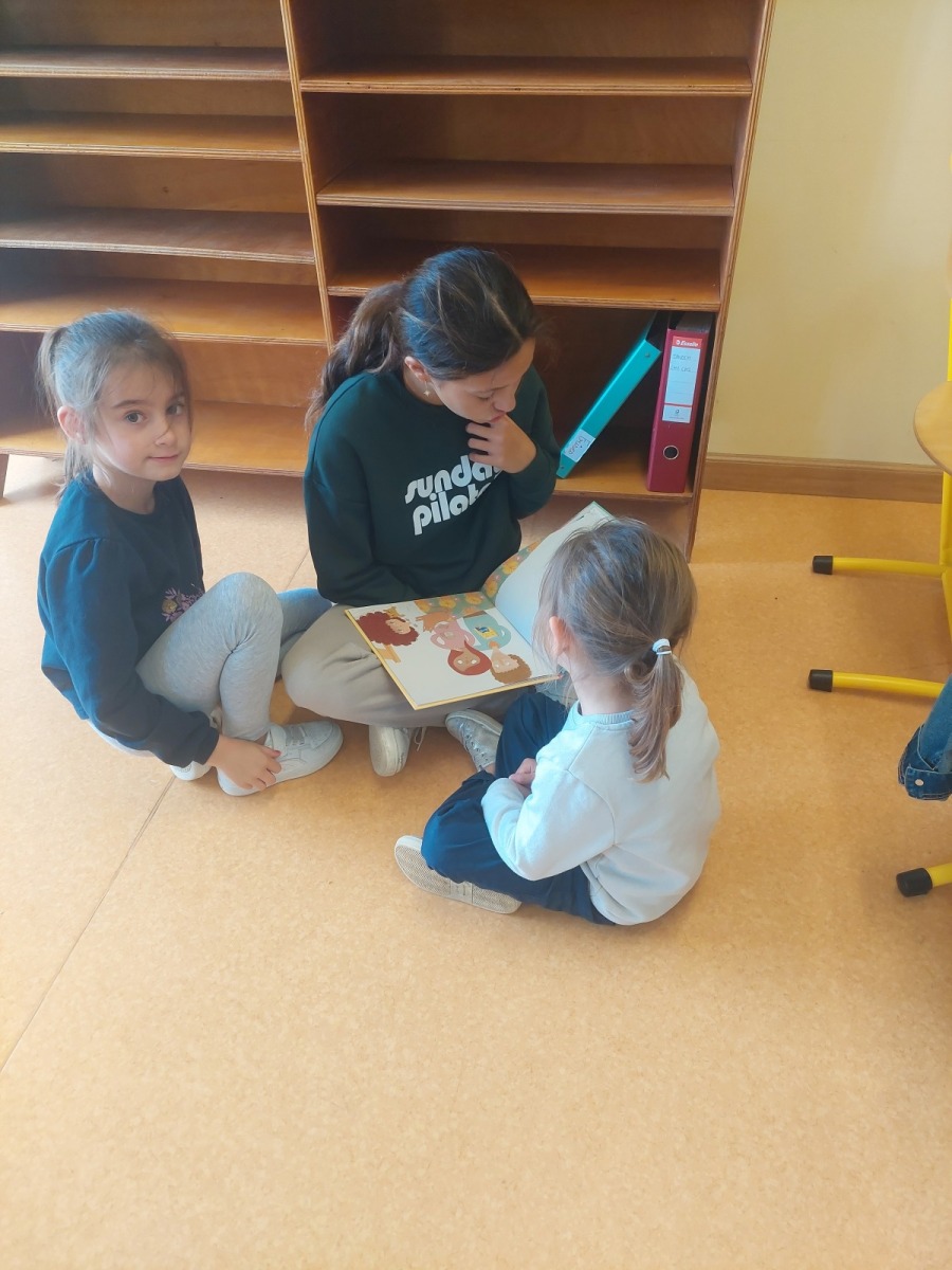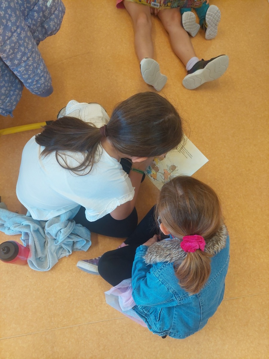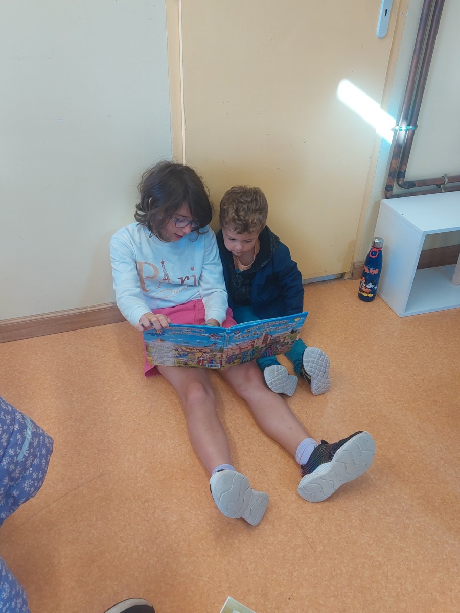 - temps calme lecture : les grands ont lu des histoires aux plus petits.