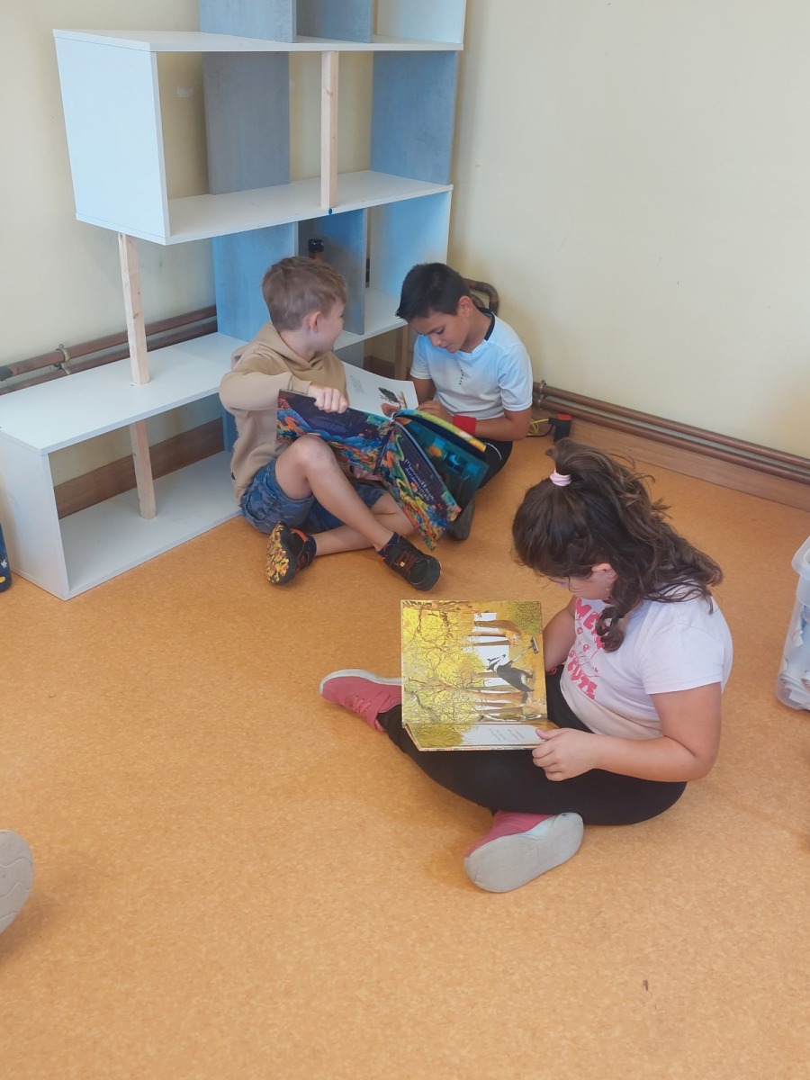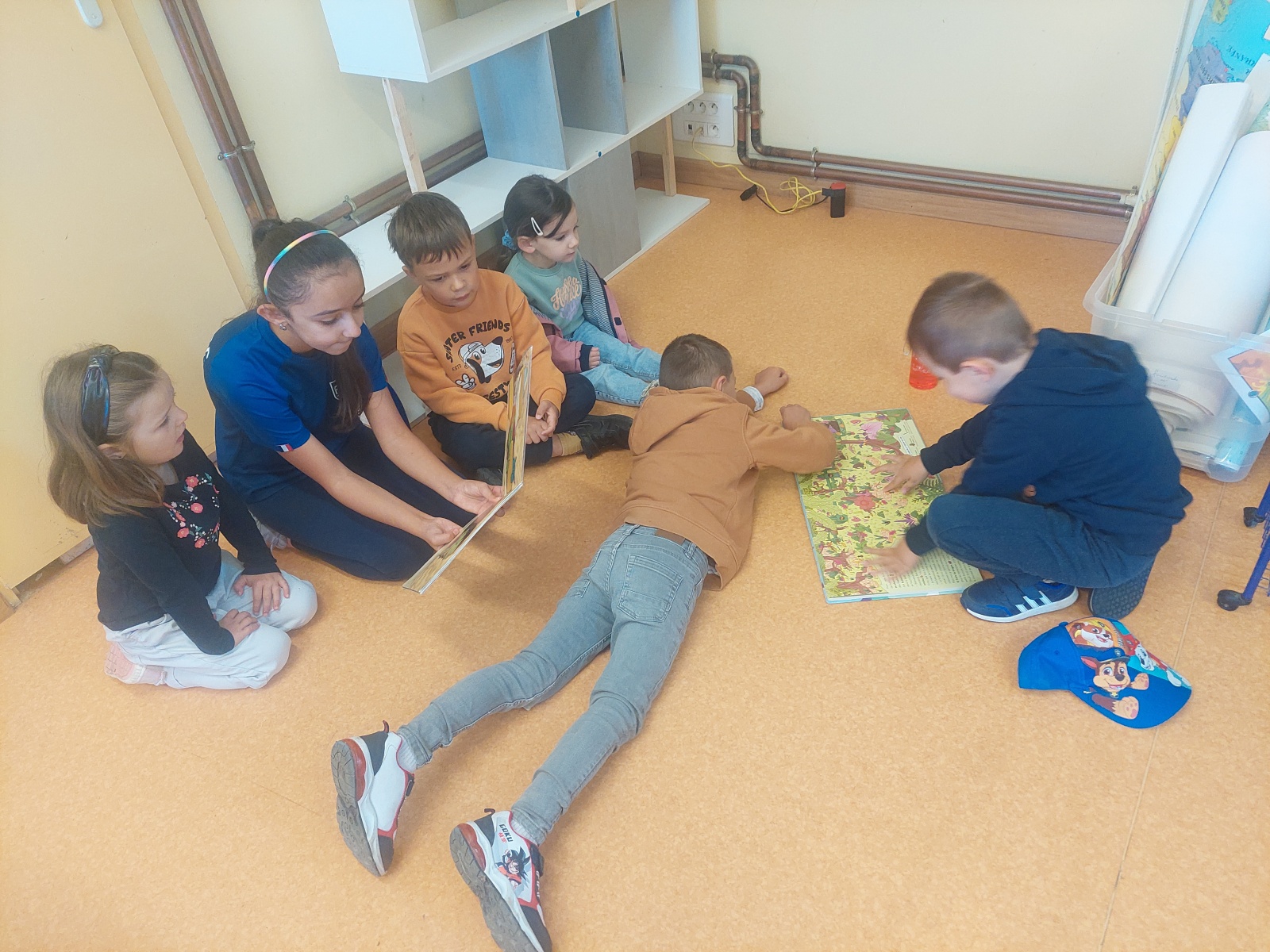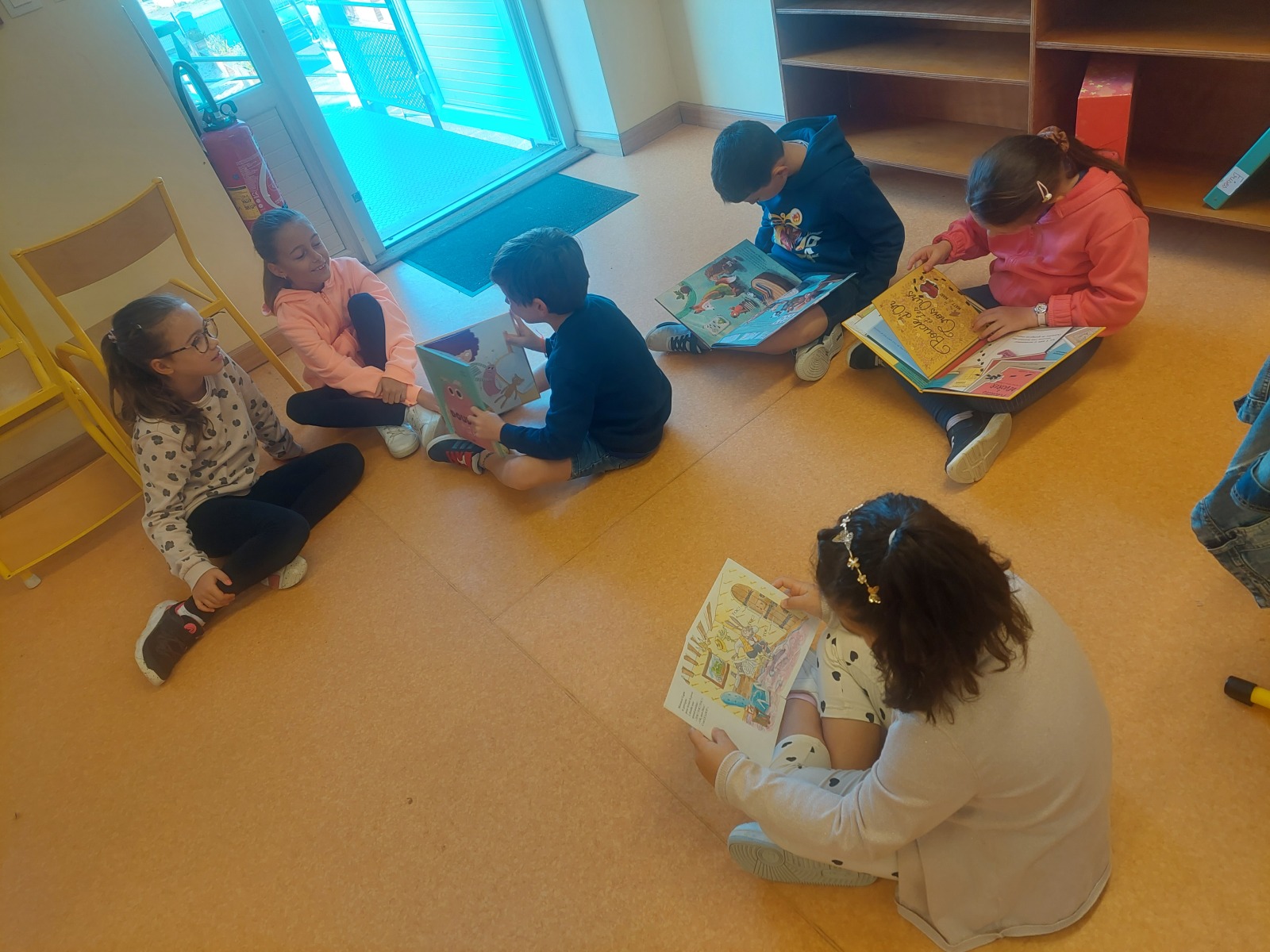 - temps calme lecture : les grands ont lu des histoires aux plus petits.