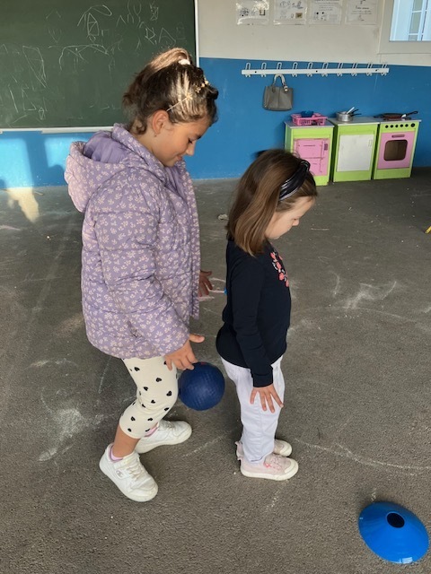 Ballon à garder entre deux personnes : un vrai travail d’équipe pour ne pas faire tomber le ballon.