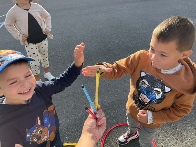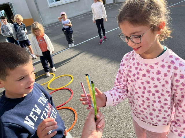 Cerceaux et crayons de couleurs : les équipes s’affrontaient en représentant pierre, feuille ou ciseaux (chifoumi)