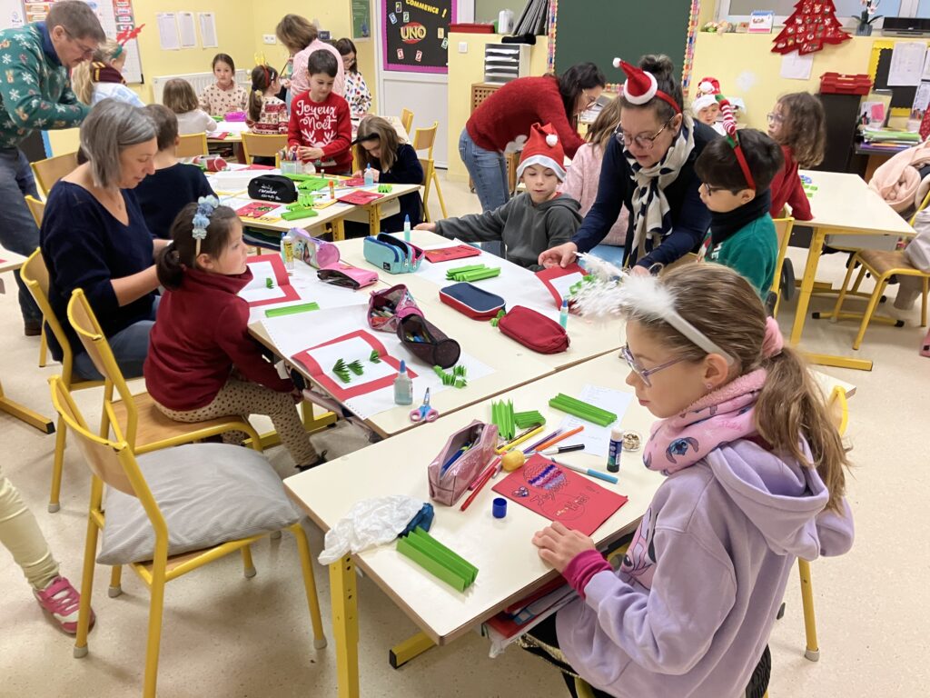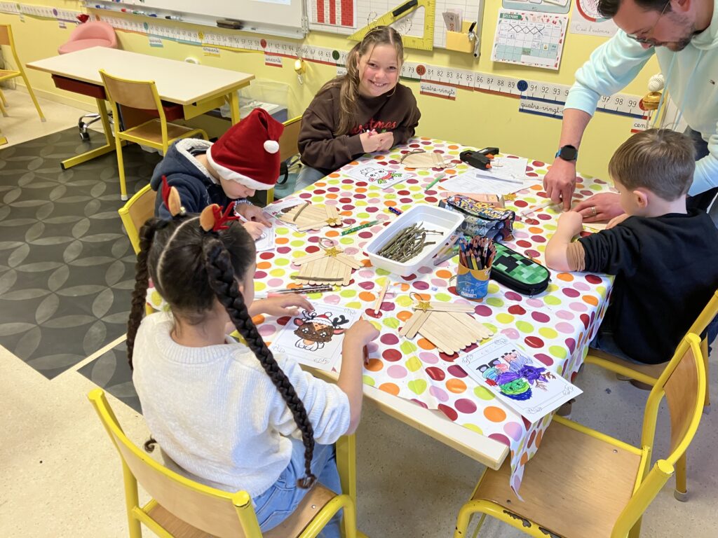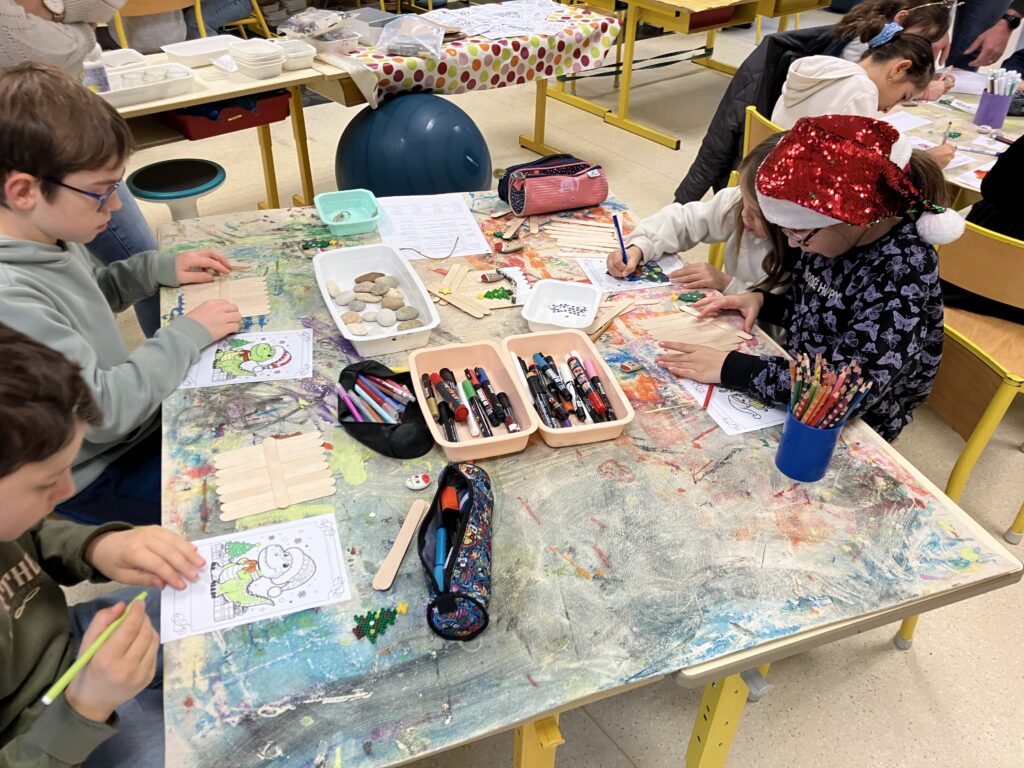 Samedi 6 décembre, l’école a vécu une belle matinée de bricolages de Noël réunissant tous les élèves, de la PS au CM2. Pour l’occasion, les enfants ont été répartis en groupes mêlant les différents niveaux, favorisant ainsi l’entraide, la coopération et les échanges entre les plus petits et les plus grands.