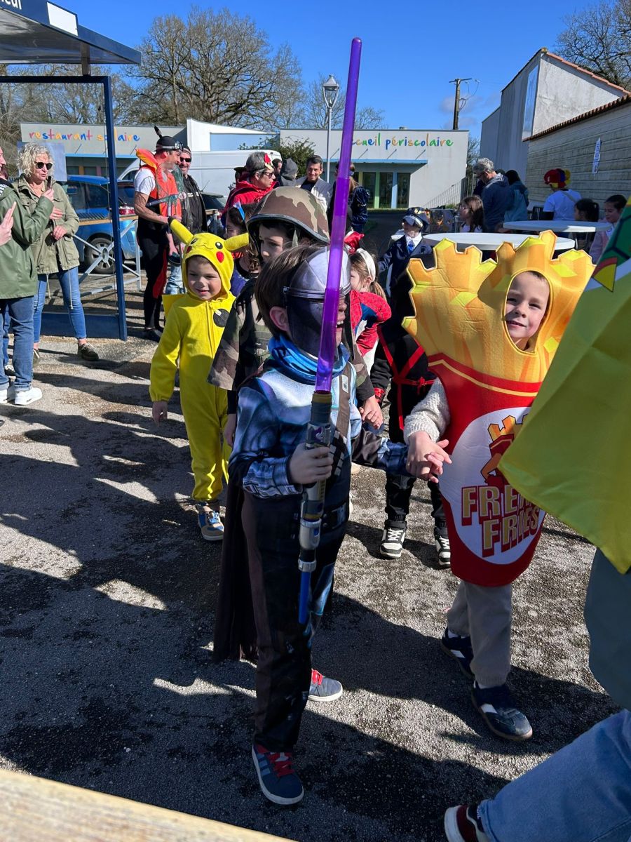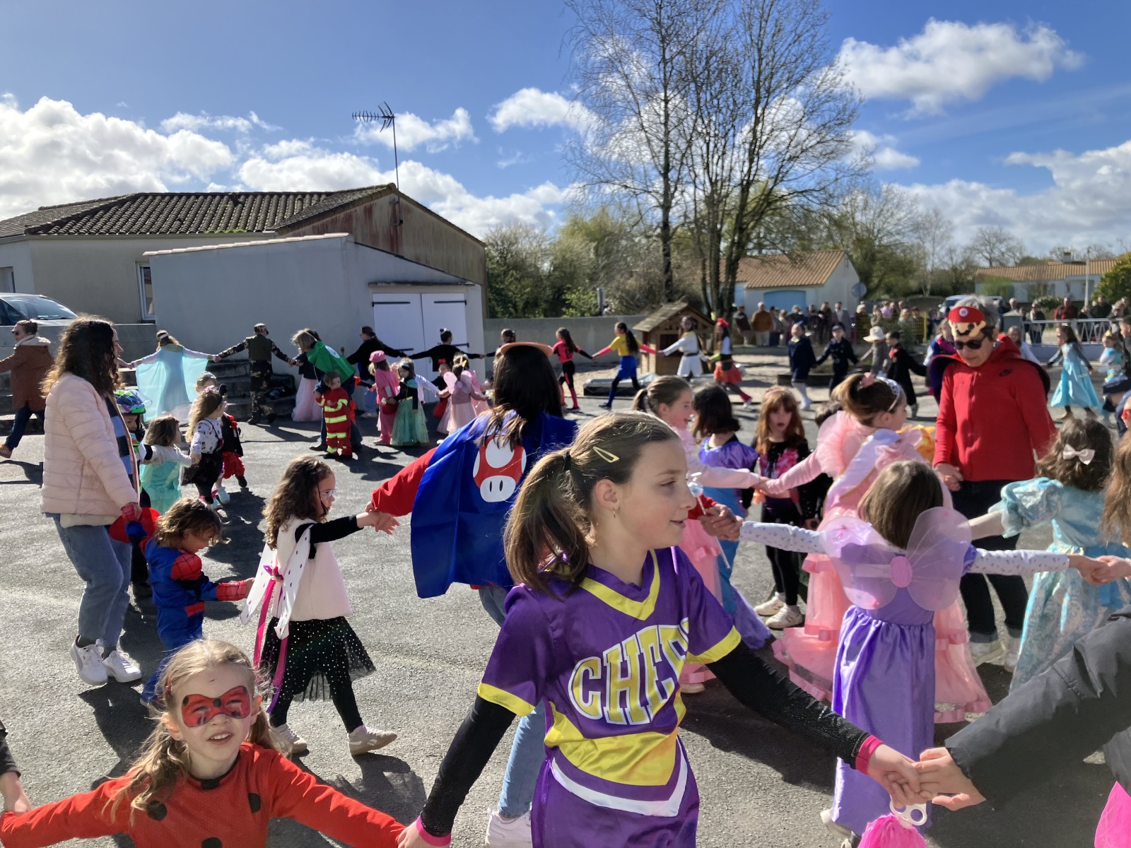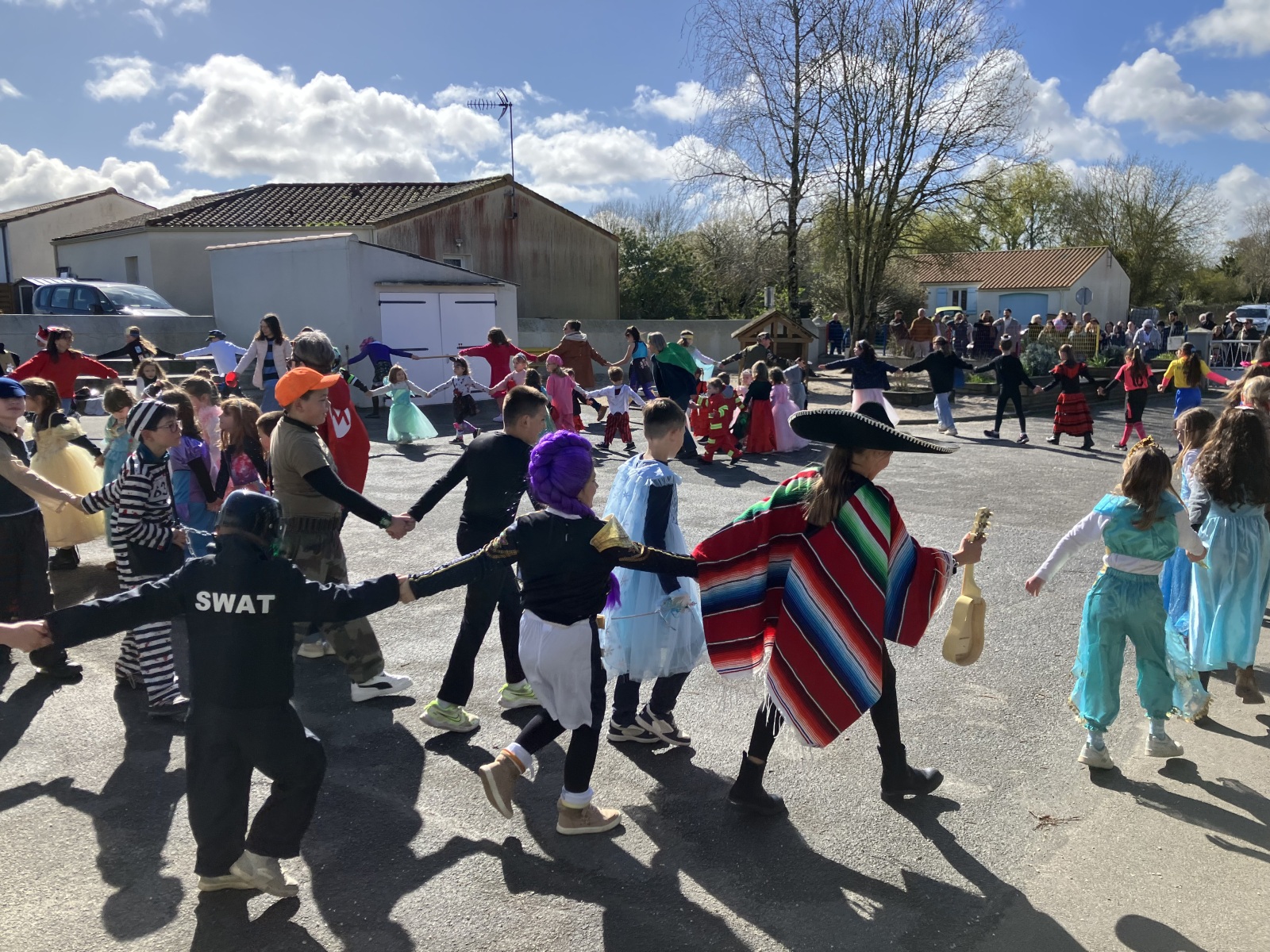 Les enfants, tous magnifiquement déguisés, se sont rassemblés avec enthousiasme pour participer au défilé dans les rues de la commune. Accompagnés de leurs parents et de nombreux habitants venus partager ce moment festif. Ils ont apporté couleurs, joie et bonne humeur tout au long du parcours, faisant de ce carnaval un véritable temps de partage entre l’école et les familles.
